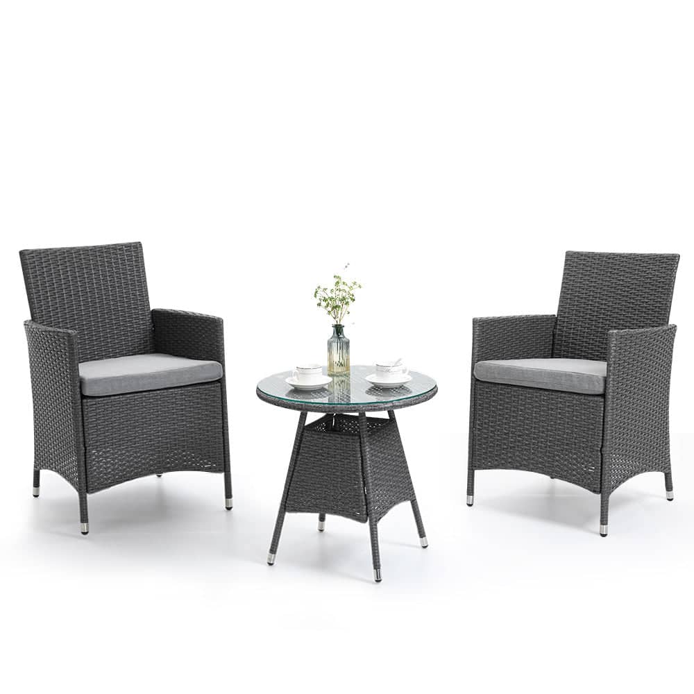 LONDON RATTAN 3 Piece Outdoor Furniture Set with Table and Chairs, Grey