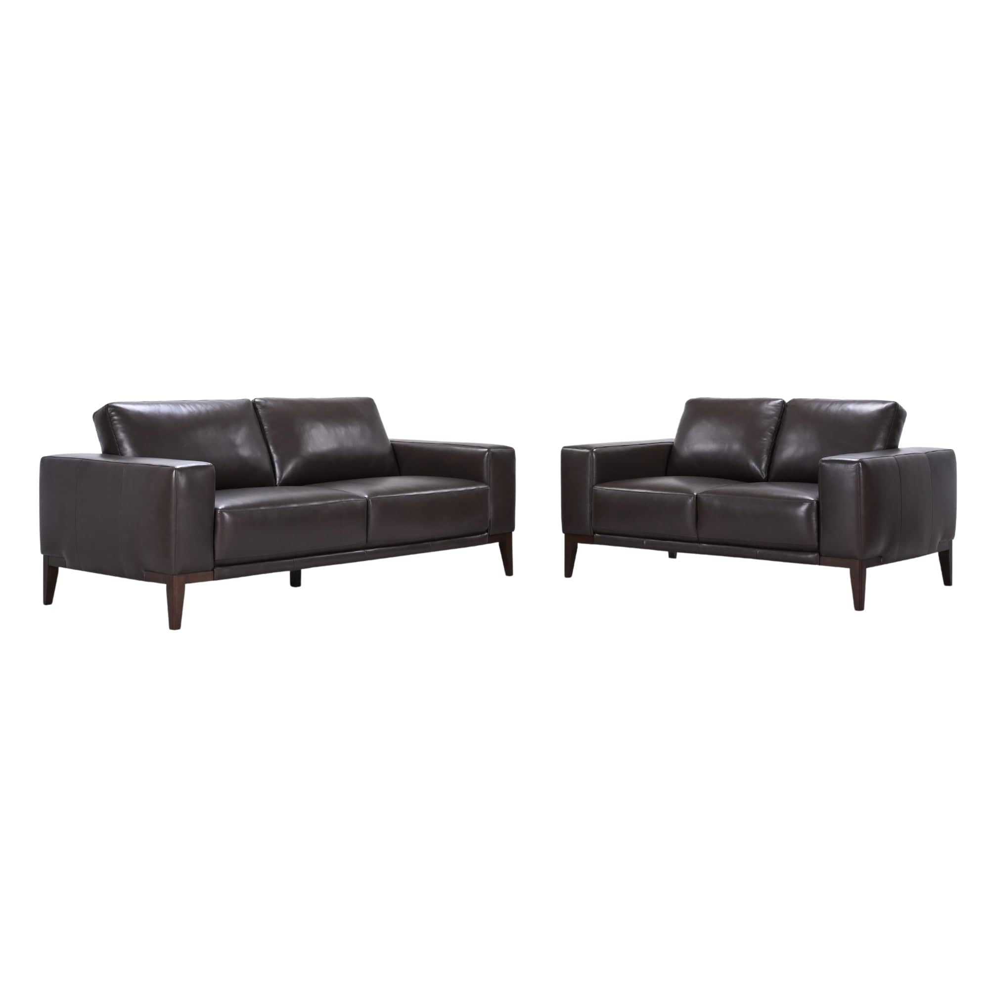 Lorenzo 2 + 3 Seater Sofa Leather Upholstered Lounge Set - Chocolate