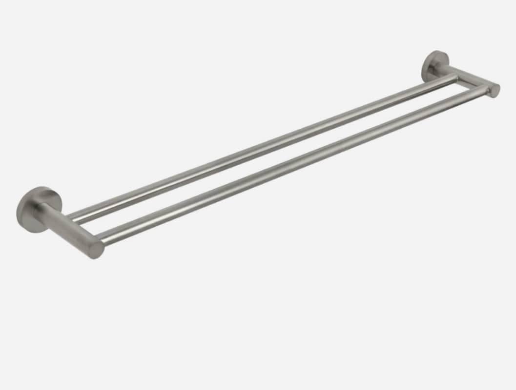 Enhance your bathroom decor with this double bar towel rack in brushed nickel finish. Crafted from durable 304 stainless steel, it offers ample space for your towels. Suitable for 800mm wide spaces, it combines elegance with utility.
