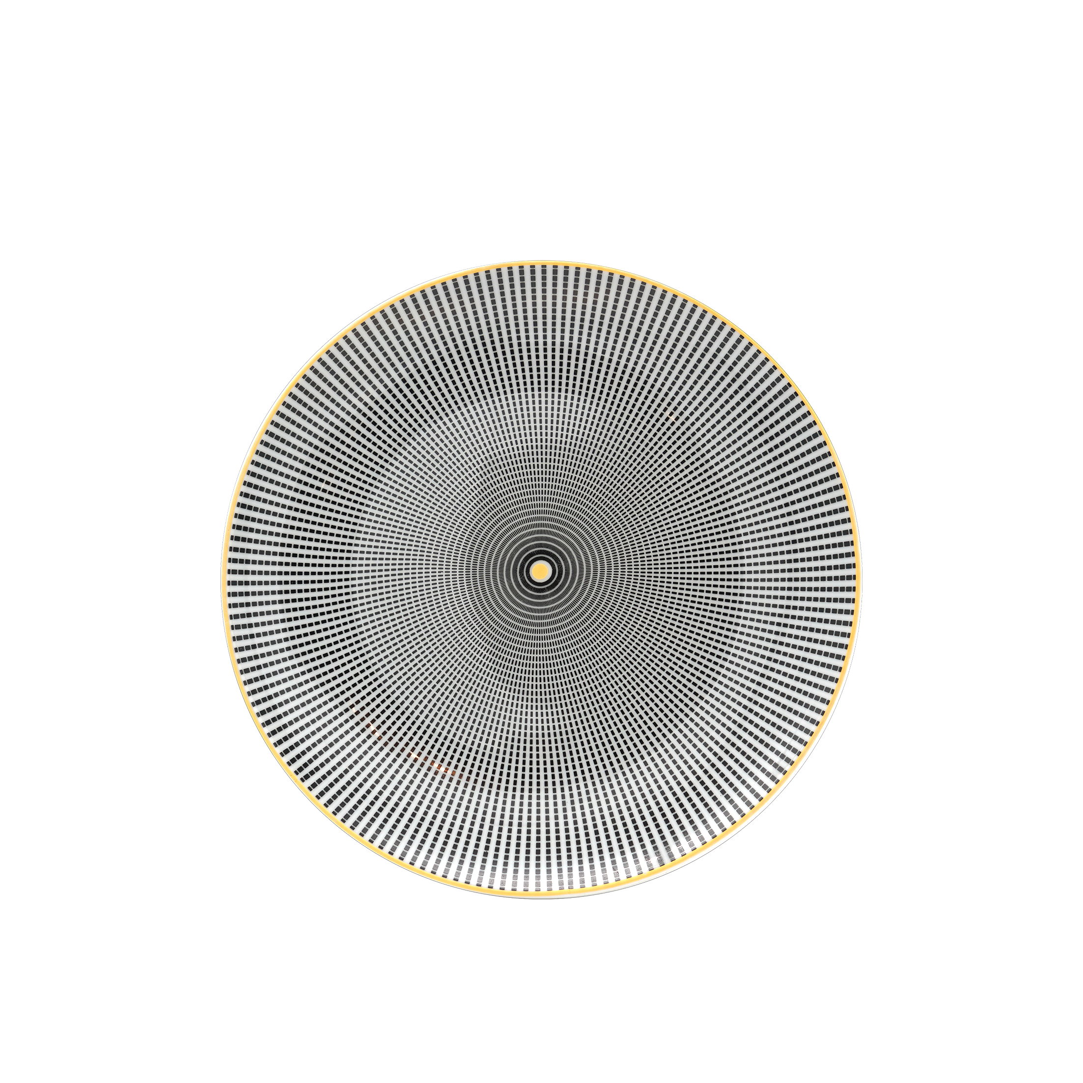 Intricate and sophisticated, this exceptional dinner plates is a testament to traditional craftsmanship and innovative design. The white porcelain plates are brought to life with delicate, hand-applied accents in black. The dots motifs, which radiate from the center like a kaleidoscope, create an illusion of movement and depth that elevate tableware to art