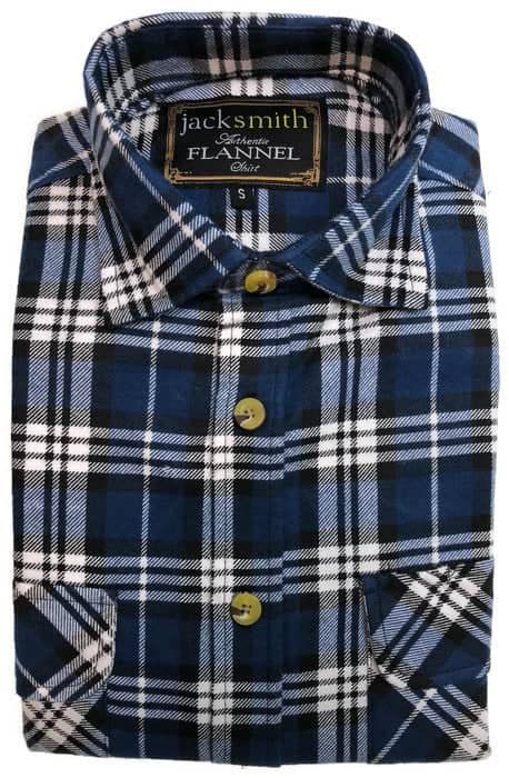 Mens Flannelette Shirt 100% Cotton Check Authentic Flannel Long Sleeve Vintage - Navy Check - S