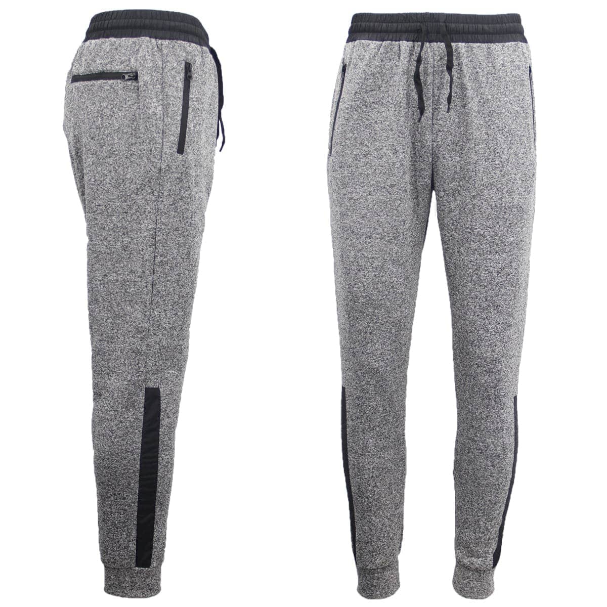 Mens Joggers Trousers Gym Sport Casual Sweat Track Pants Cuffed Hem w Zip Pocket, Light Grey, XL