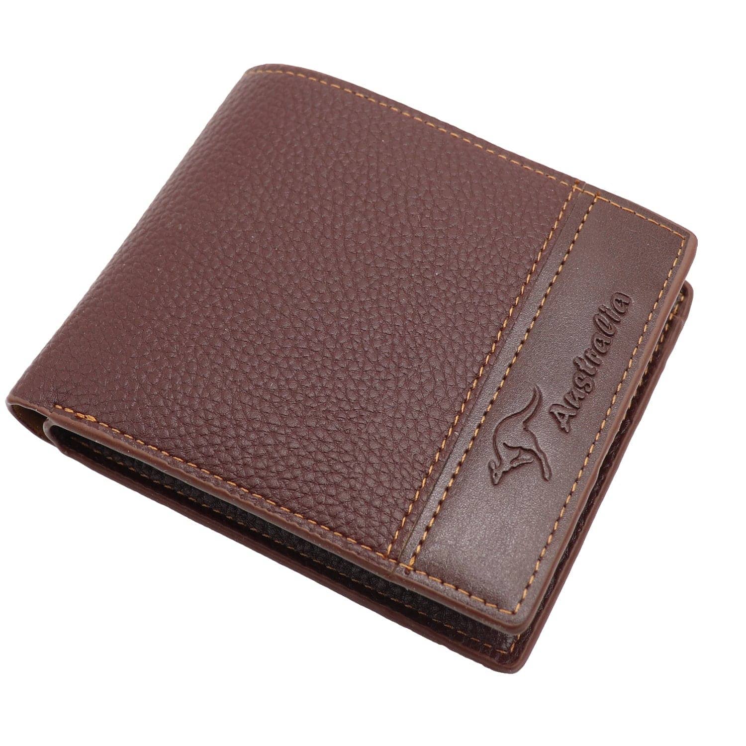 Mens Wallet Australian Kangaroo Leather Bifold Souvenir Gift Coin Card Holder, Brown Textured