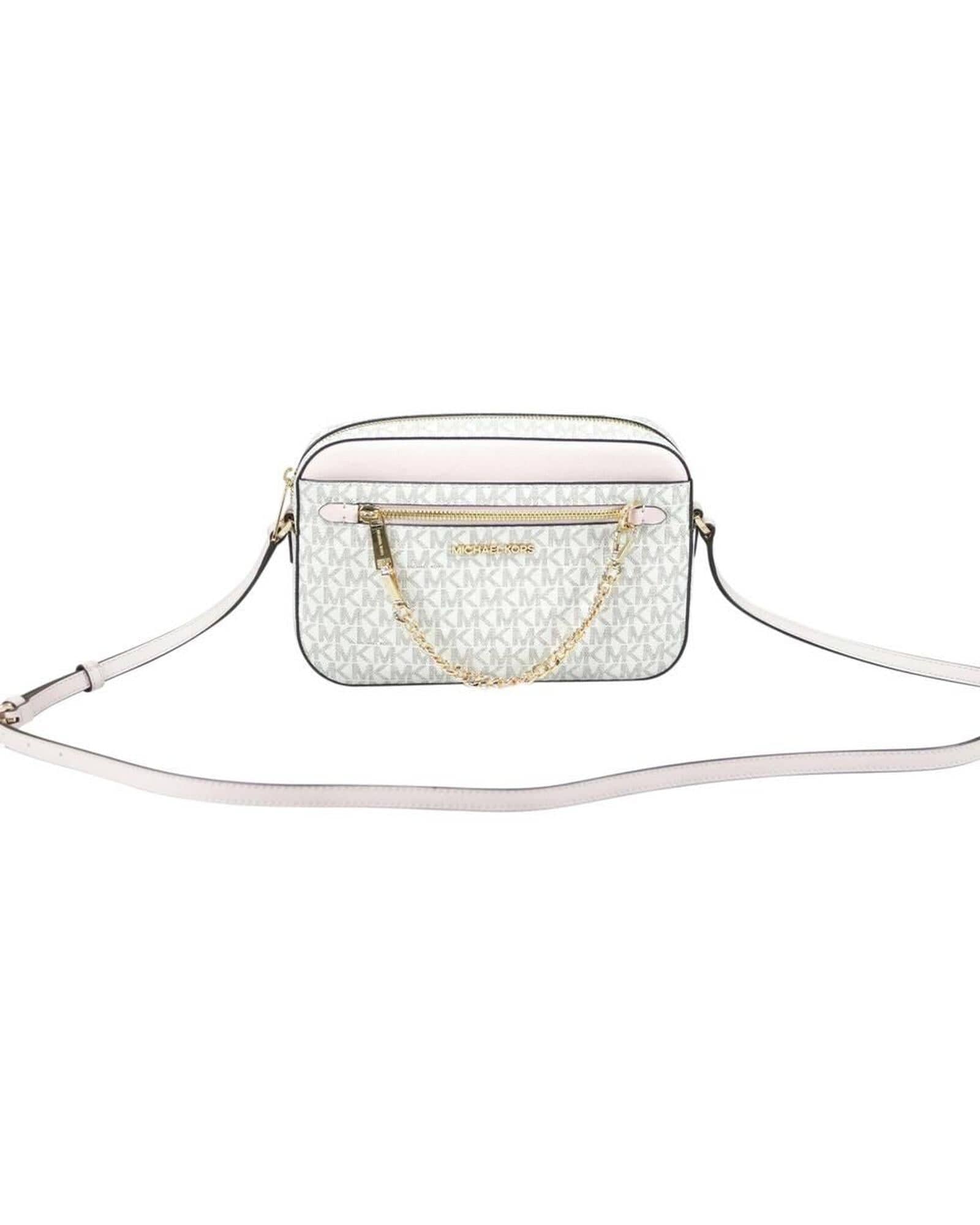 - Style: Michael Kors Jet Set Item Large East West Zip Chain Crossbody (Vanilla Signature/Powder Blush)