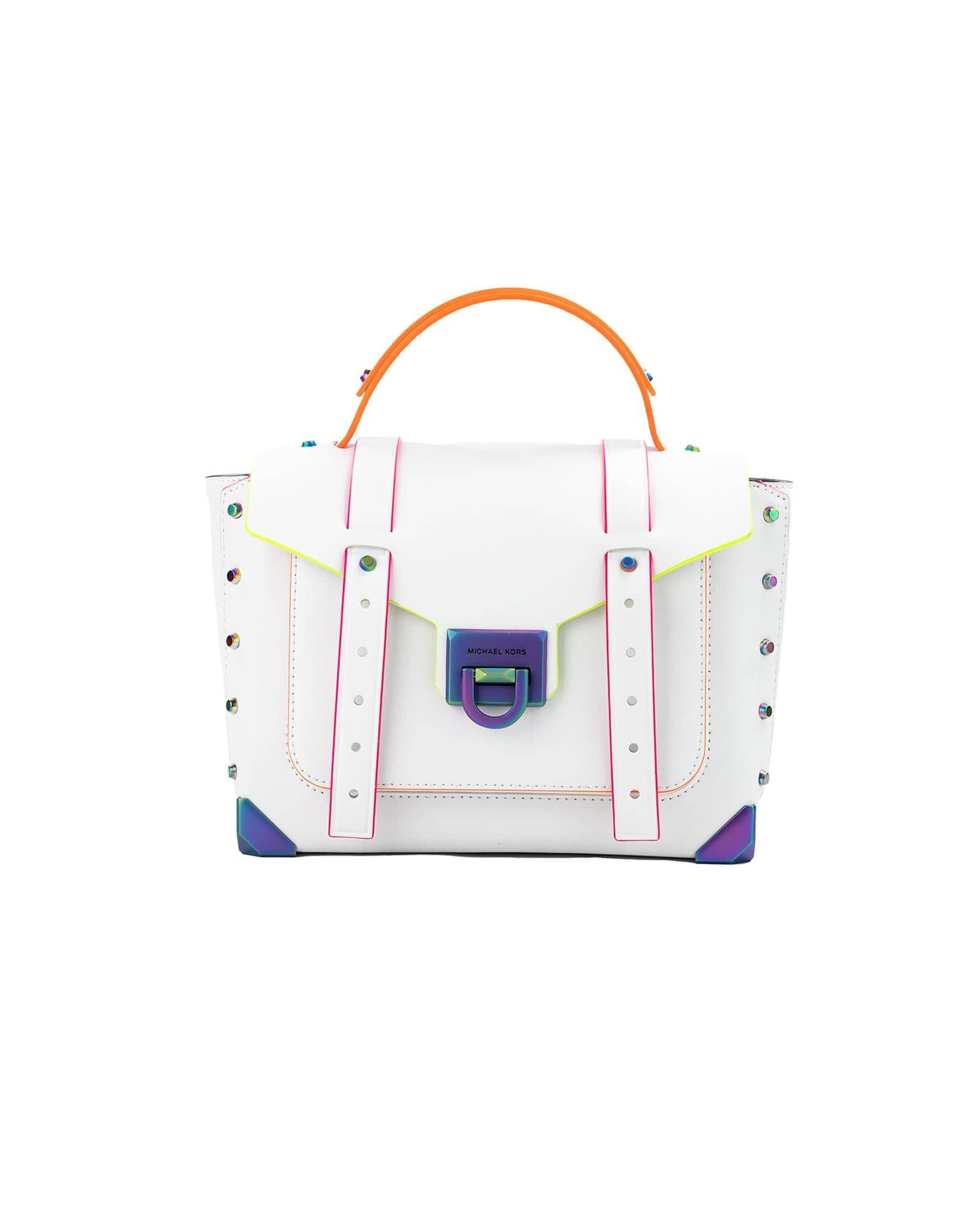- Style: Michael Kors Manhattan Medium Top Handle School Satchel Bag (Optic White/Contrast Trim)