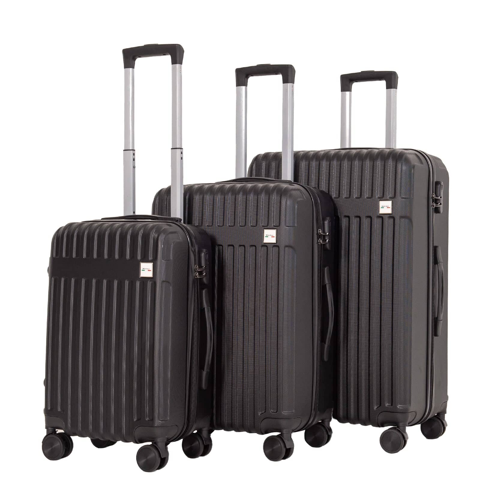 Milano Decor 3 Piece Luggage Set Travel Hard Case 20" 24" 28" Hard Case Durable - Black