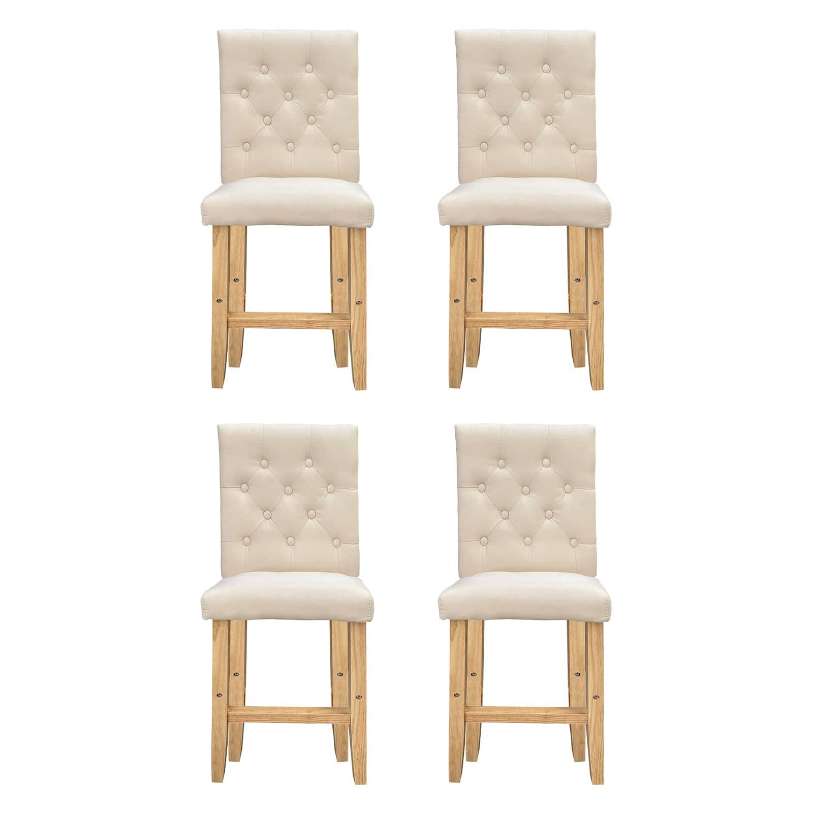 Milano Decor Hamptons Barstool Cream Chairs Kitchen Dining Chair Bar Stool - Four Pack - Cream