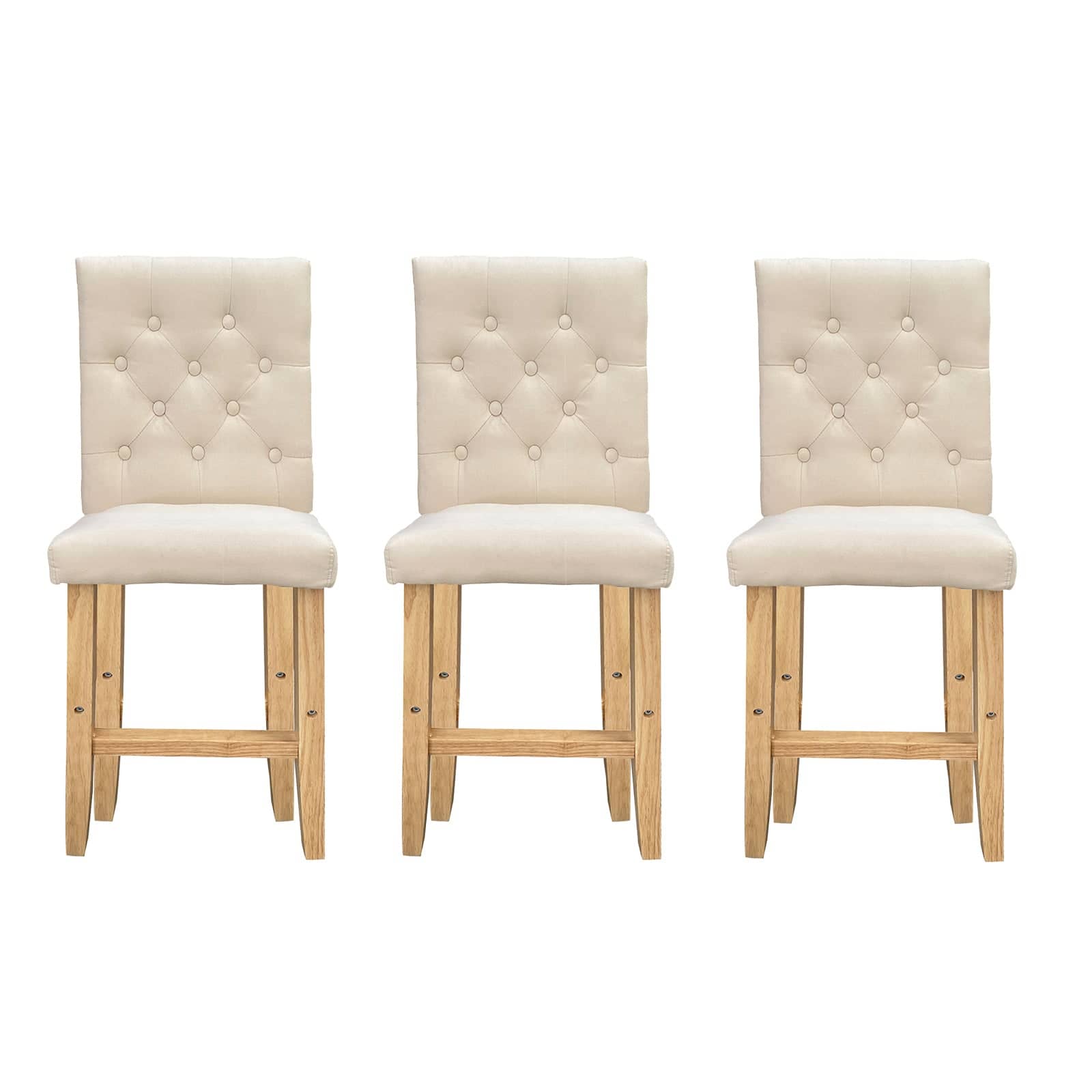 Milano Decor Hamptons Barstool Cream Chairs Kitchen Dining Chair Bar Stool - Three Pack - Cream