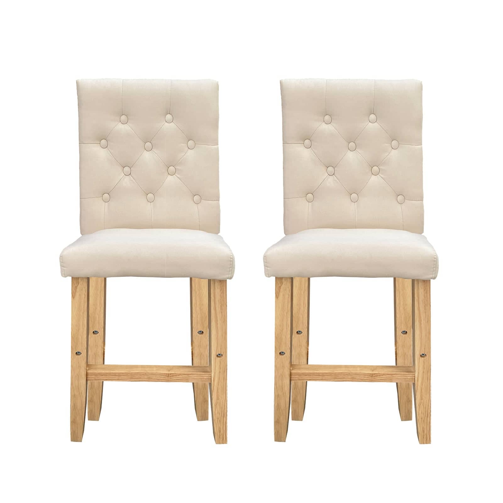 A classy bar stool featuring a modern cream linen and timber design, comfortable and classic tufted design that exudes the modern yet classic Hamptons style.