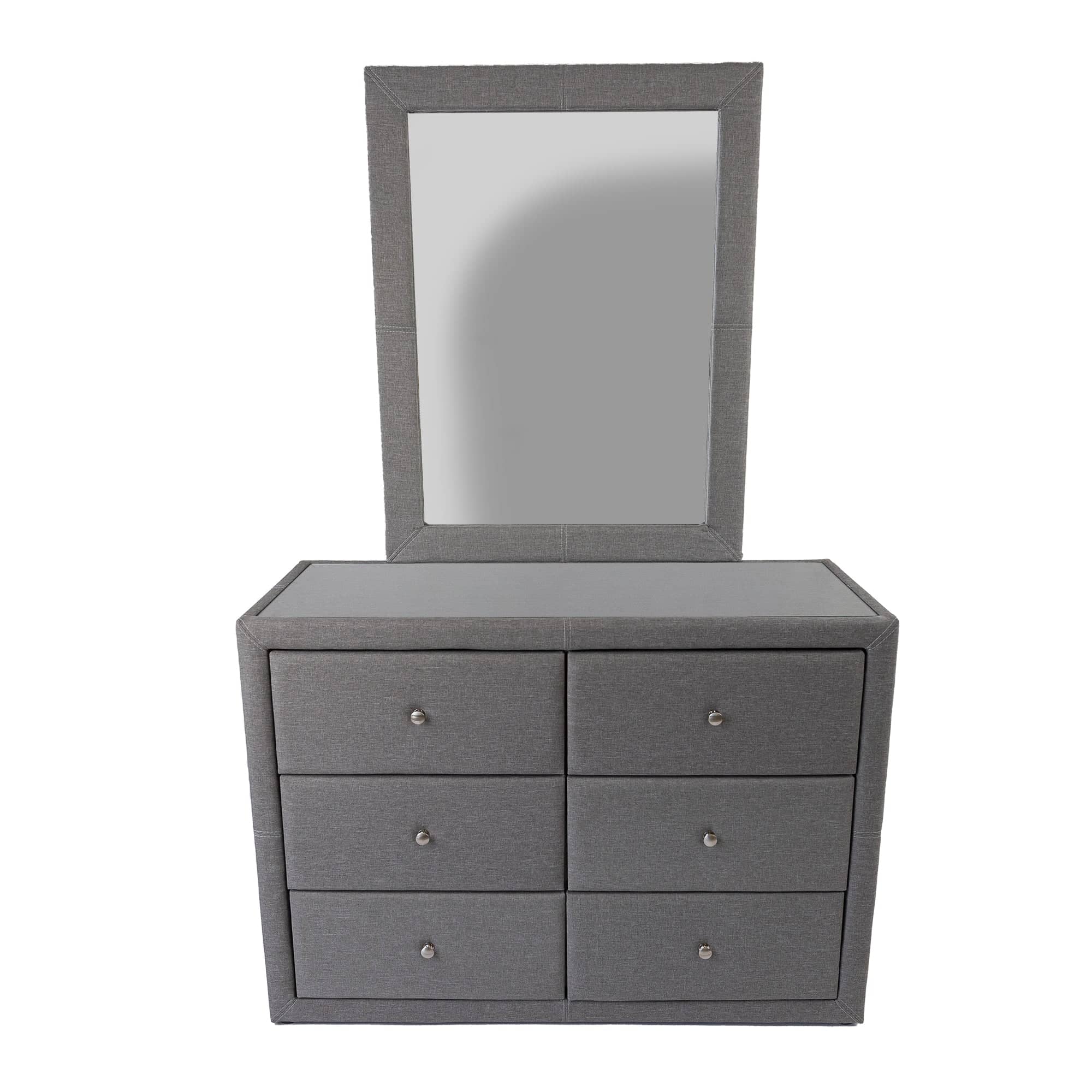 - 100% polyester fabric upholstered dresser and mirror frame