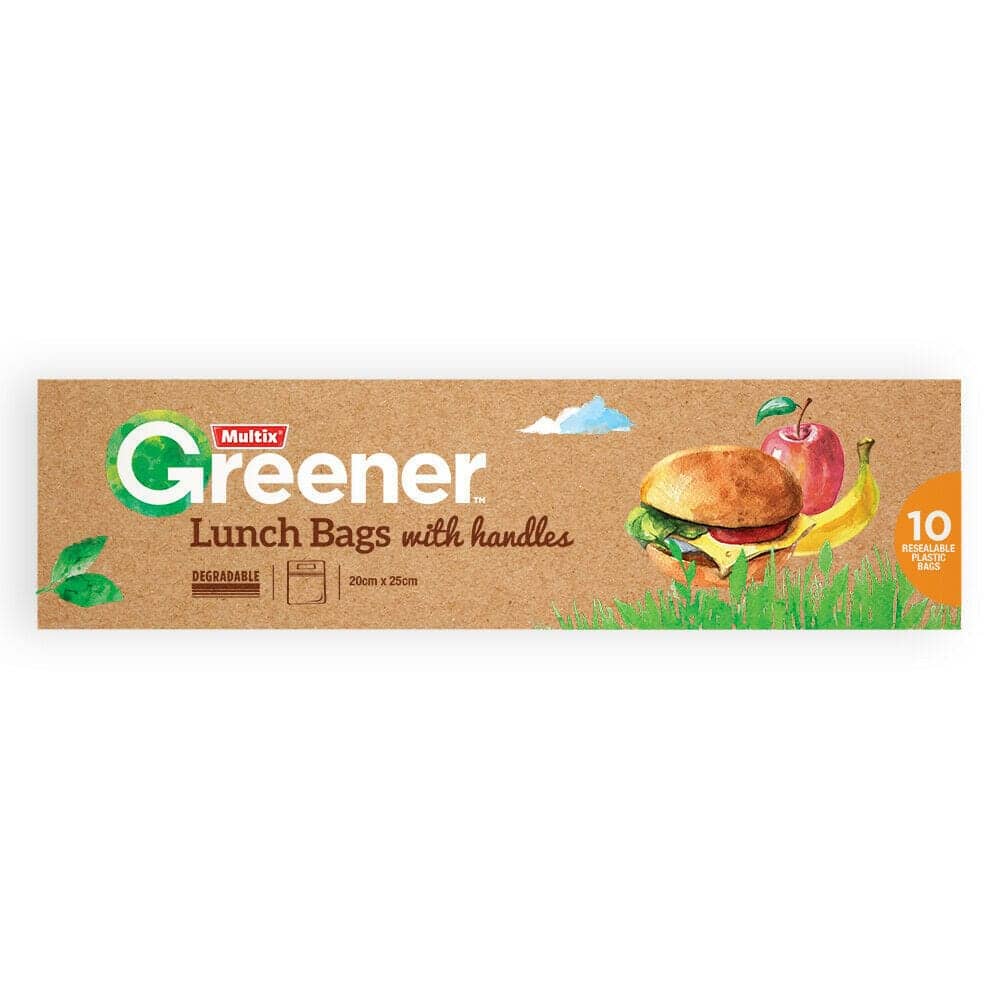 Multix Pk10 Greener Lunch Bags With Handles Degradable 20Cm X 25Cm