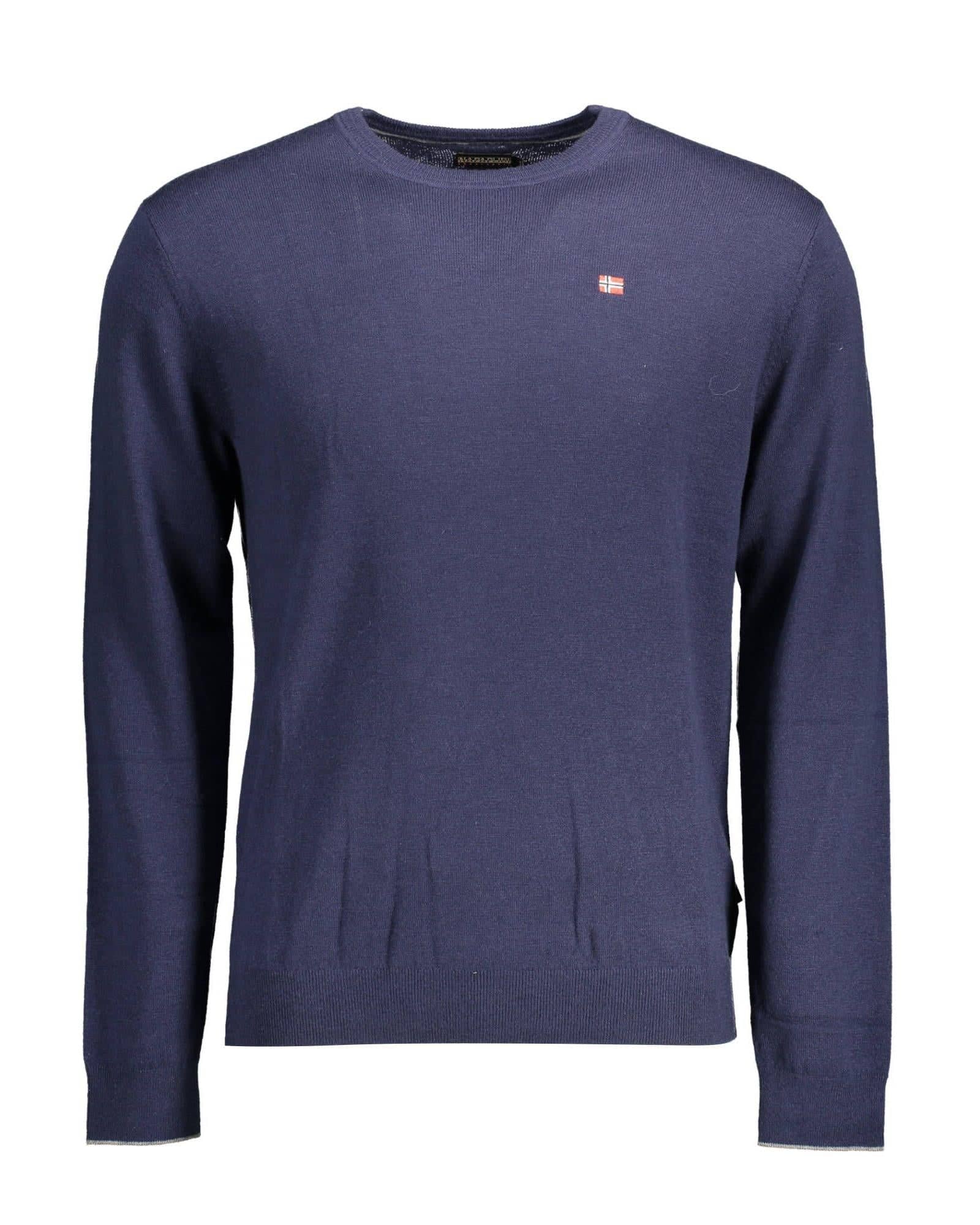 Blue Wool Shirt Long sleeves sweater Round neck Embroidery Logo Suitable for men Material: 100% Wool