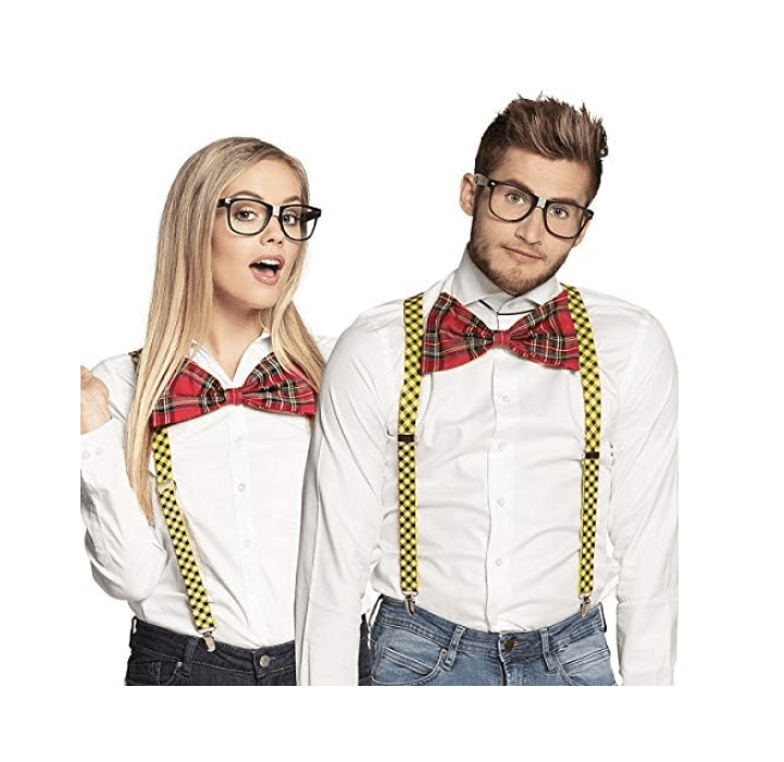 NERD COSTUME KIT Set Geek Glasses Fancy Dress Retro Funny Braces Bow Tie Party