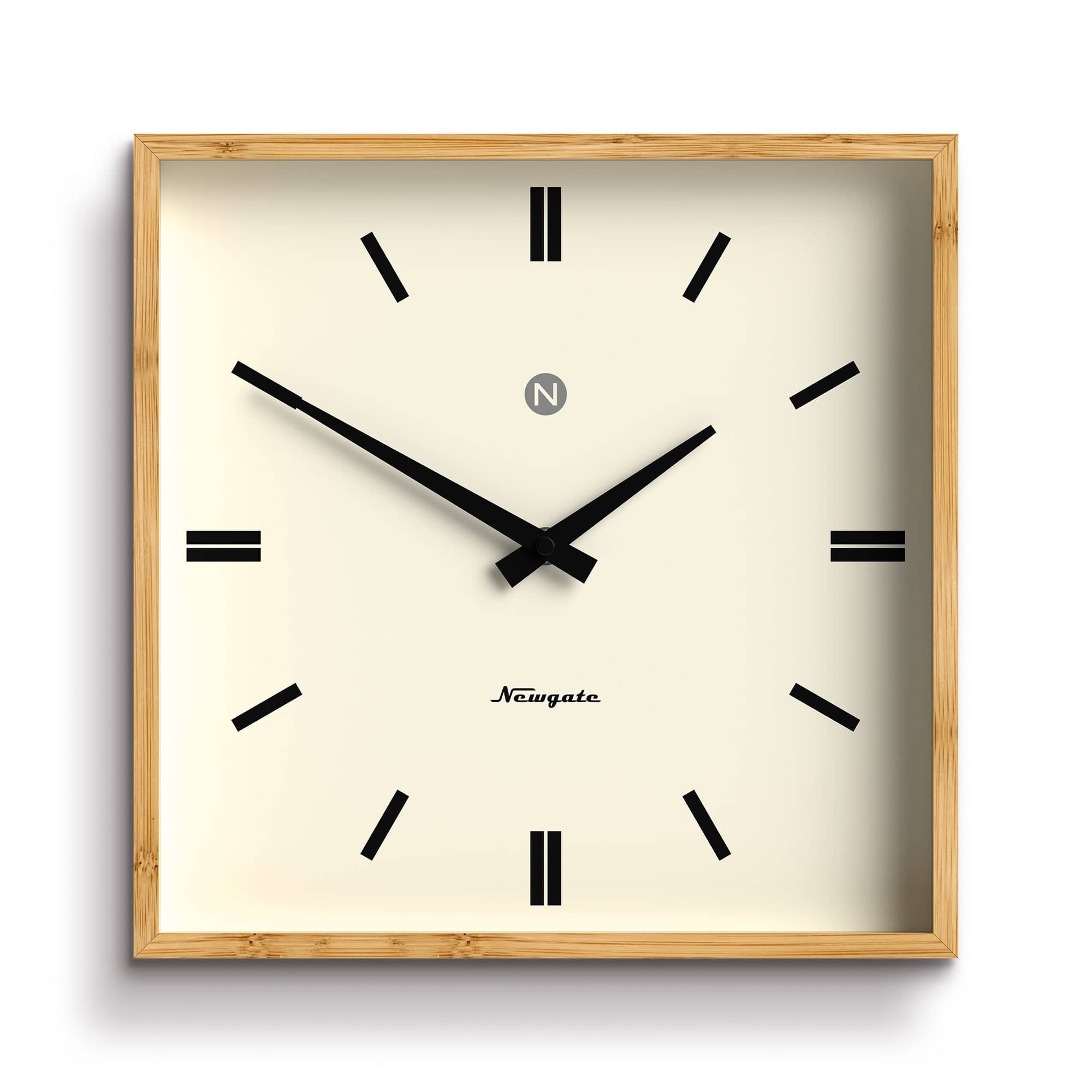 Newgate Fiji Wall Clock - Moped Dial A modern square wall clock with a bamboo case and a minimalist Scandi-inspired design combining functionality with beauty. This case comes with three dial options.