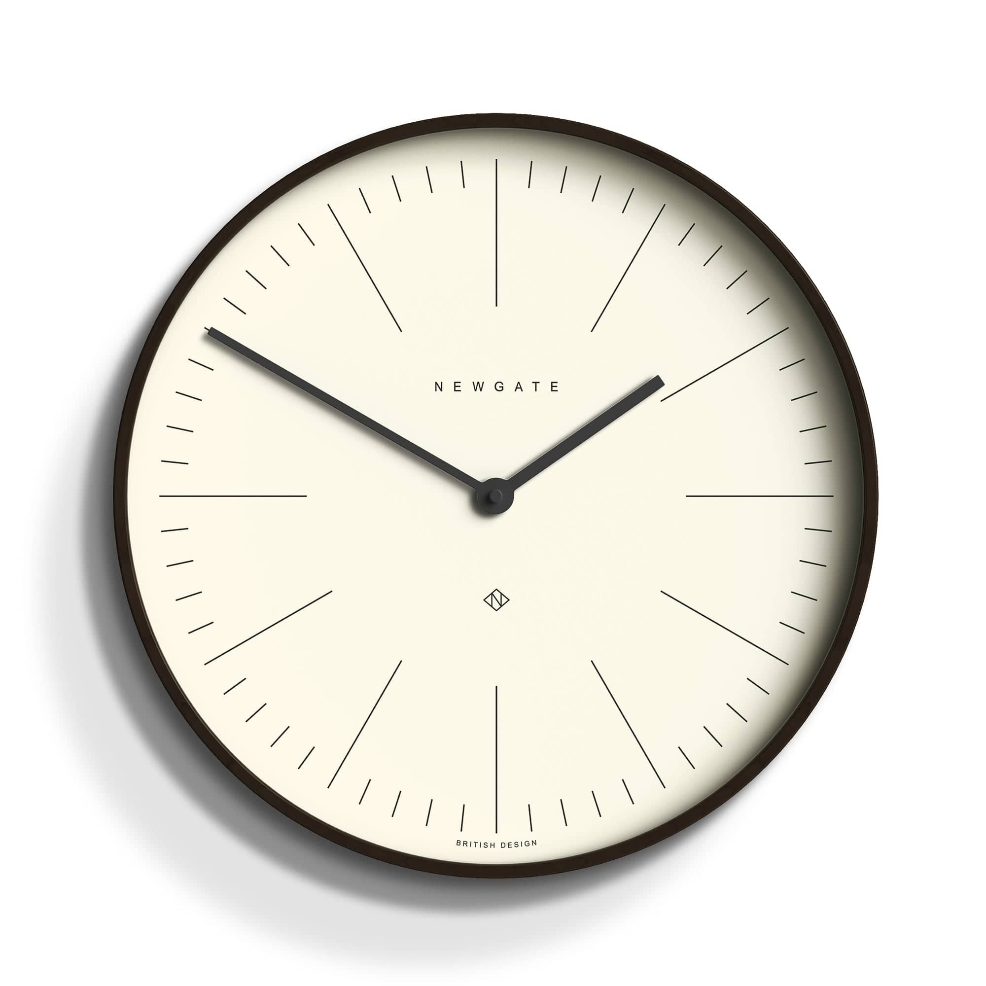 Newgate Mr Clarke Clock Dark Wood Marker Dial Modern Scandi Wall Clock | Minimalist Dark Plywood