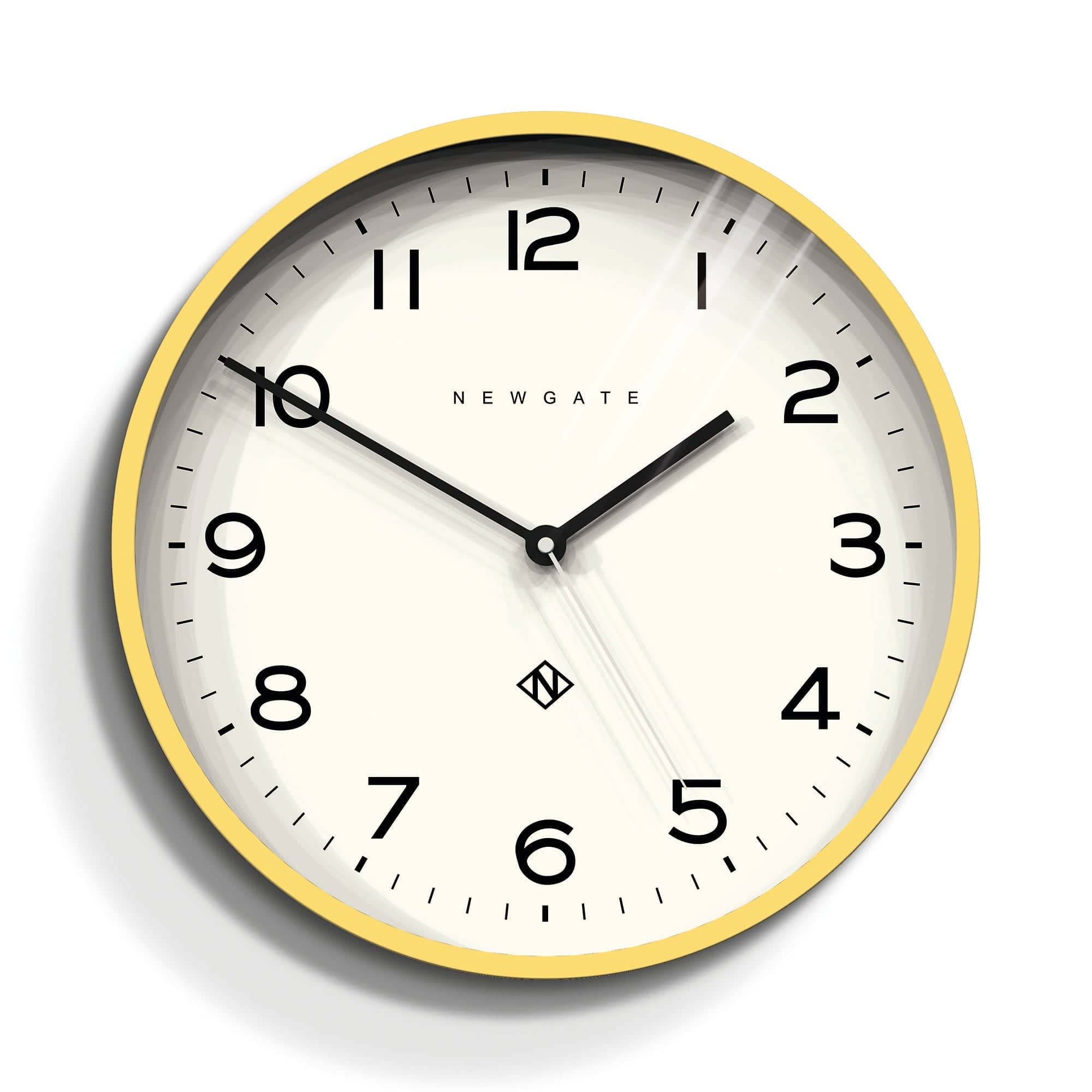 Newgate Number Three Echo Clock Silicone Yellow A yellow wall clock with a modern graphic dial and a minimalist straight-cut case.