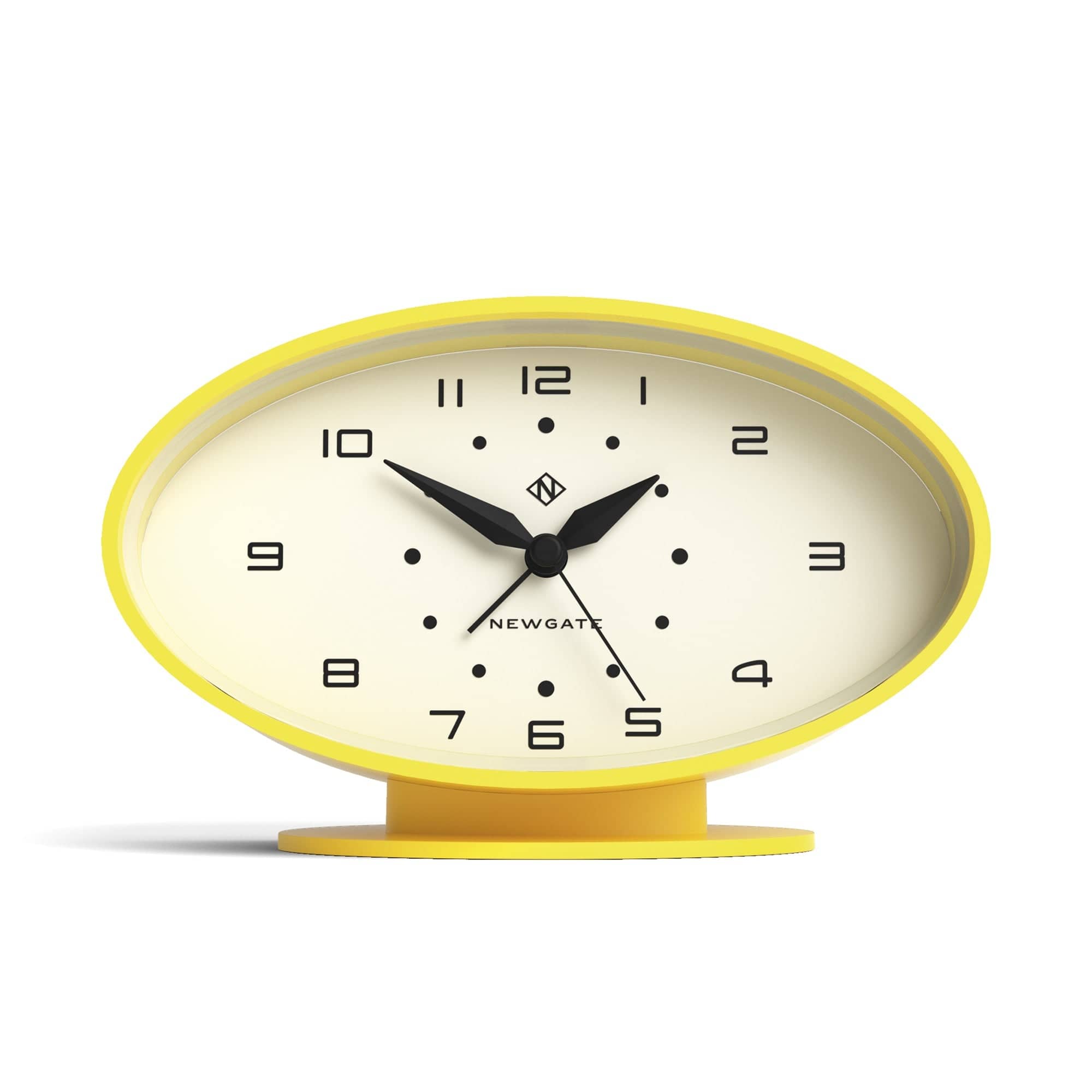 Newgate Ronnie Alarm Clock Yellow Retro Alarm/Desk Clock | Silent 'No Tick' | Yellow