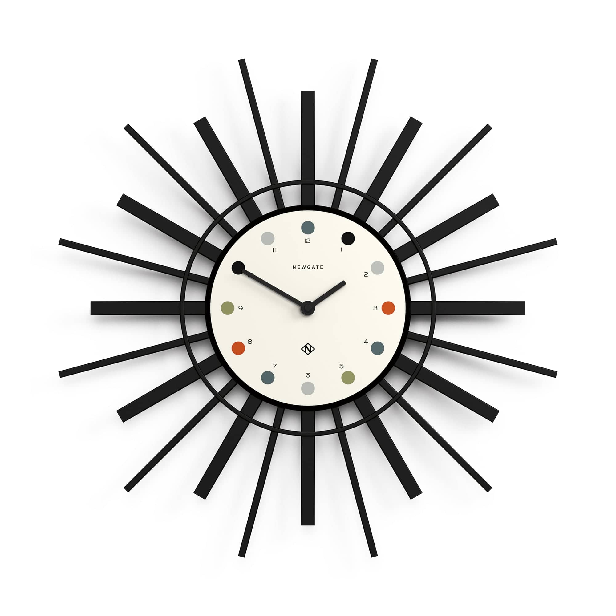Newgate Stingray Wall Clock Black - White Dial Retro Style Sunburst Wall Clock | Black and Cream
