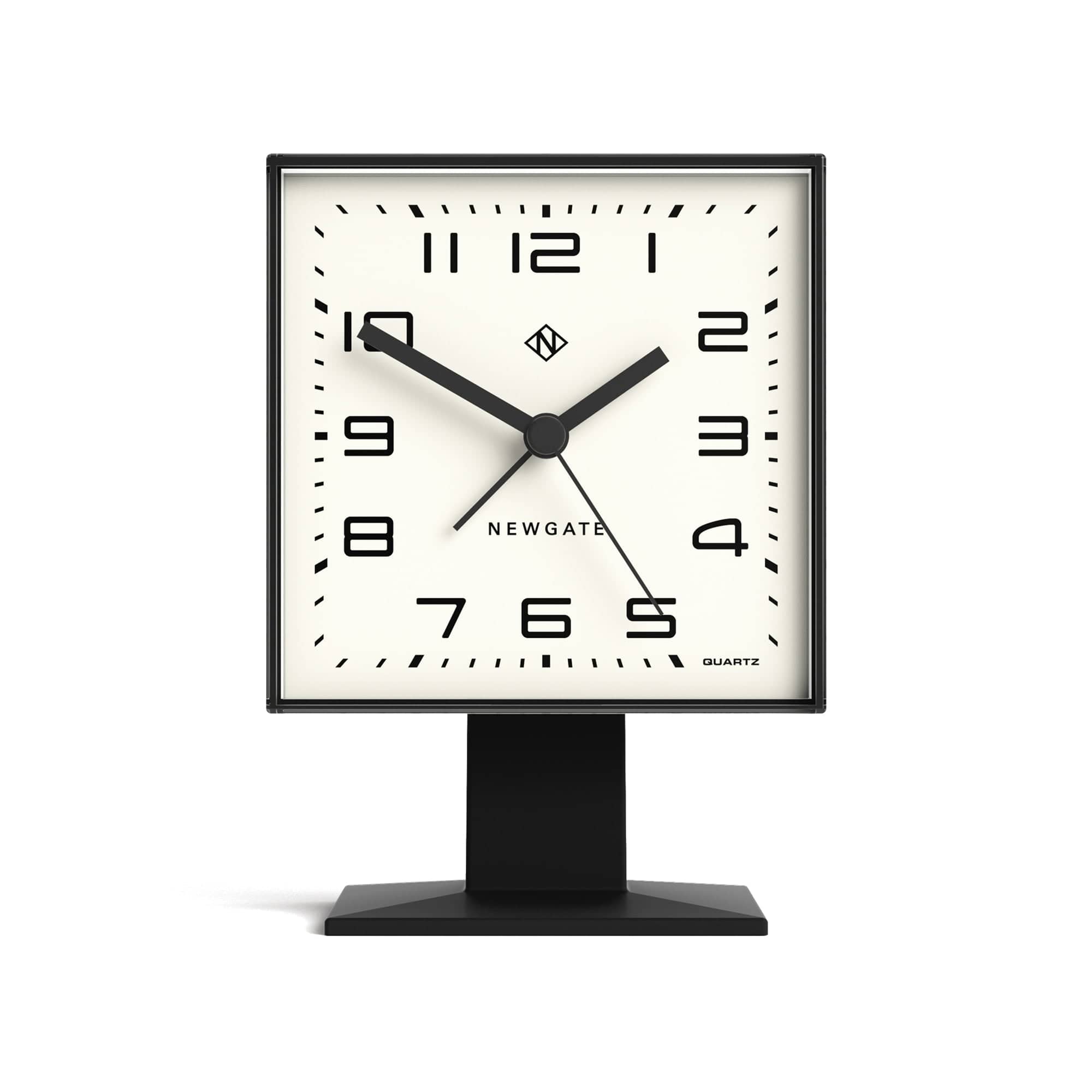 An acrylic modern retro-inspired alarm clock with an arabic dial and deep acrylic lens. The square case has a matt finish and sits on a square podium, making this unique Newgate designed alarm clock a great addition to your desk, shelf or bedside.