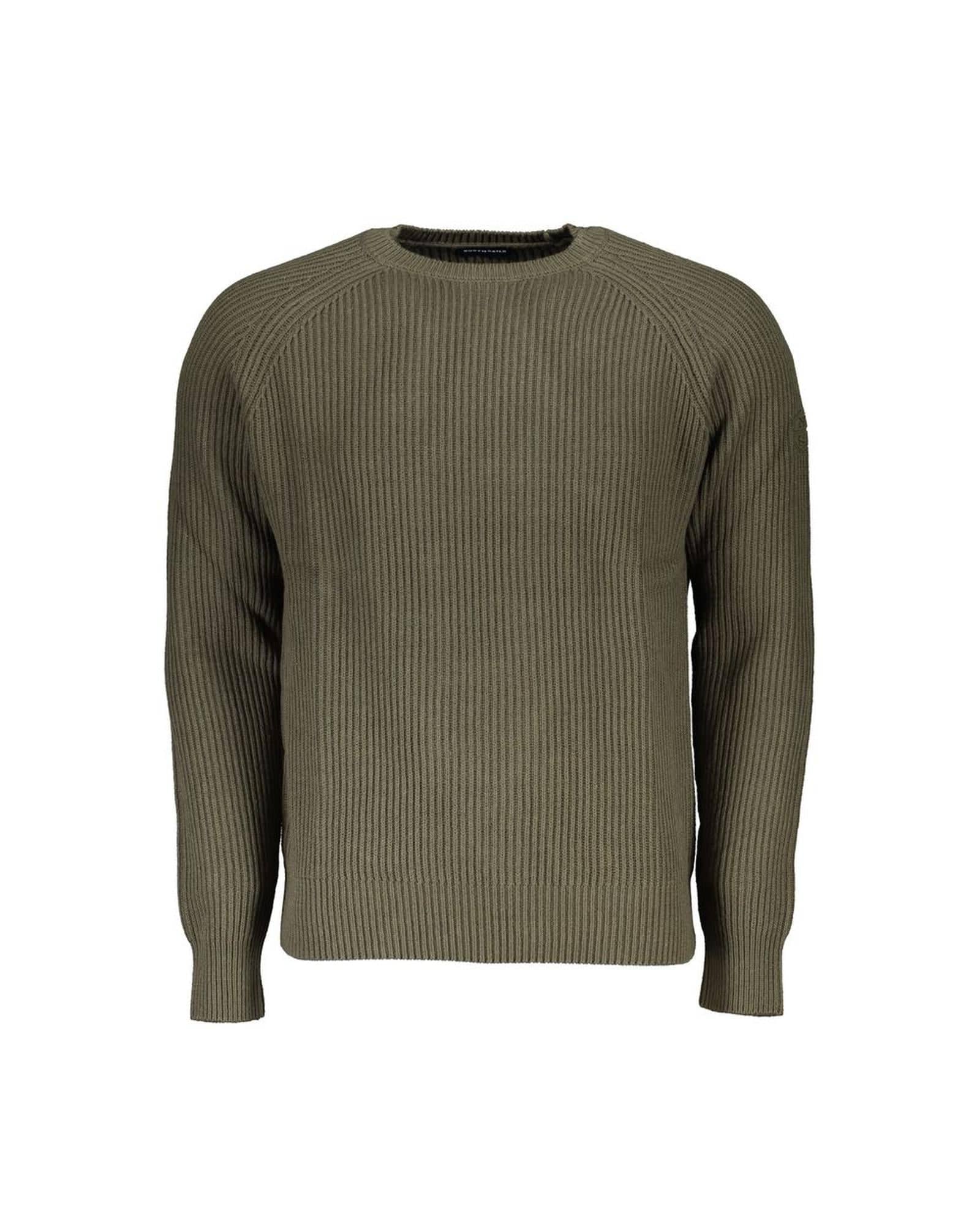 Green cotton shirt Long-sleeved sweater Crew neck Contrast details Application and logo Made with recycled fibers Sustainable and eco-friendly Designed for men Material: 80% Cotton 20% Fabric