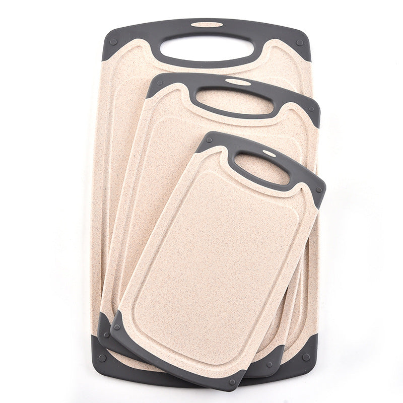 Off White 3-Piece Wheat Straw Cutting Board Set – Non-slip, Groove Design, Plastic Chopping Board for Kitchen Use