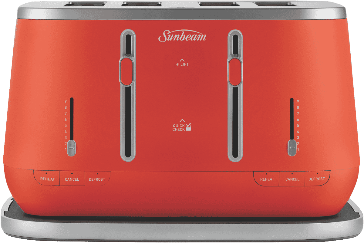 This orange toaster has a 4 slice capacity. It features variable browning control, so you can toast to your own version of perfection. The TAM8004NG has high lift functionality. Its removable crumb tray lets you maintain a crumb-free bench. Keep your bench neat with the toaster's cord storage. It features an orange finish. Prepare English muffins and frozen waffles thanks to this toaster.