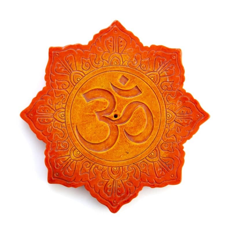 Lotus-shaped incense burner featuring spiritual symbol 'om' surrounded by intricate carved details