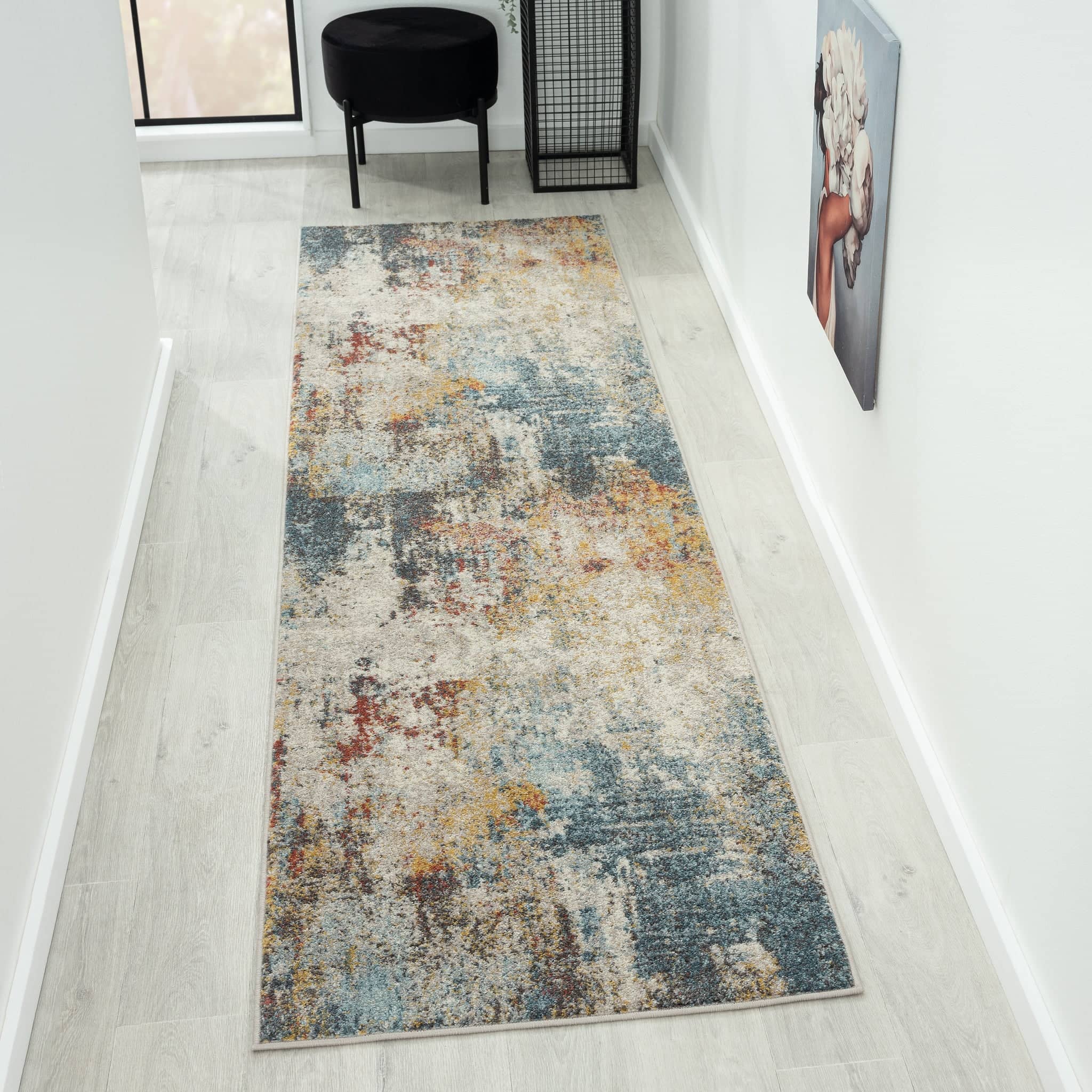 Oriental multicolor rug with distressed details and eroded color techniques reveal thoughtful detail and the artistic influences of this abstract style. The dense pile is created with a premium synthetic yarn that provides sumptuous softness and proven stain resistance power while the durable latex backing offers precise placement during daily wear and tear. This area rug is available in scatters,other popular area rug sizes, making it ideal for any indoor space, including the living room, dining room, bedroom, office, hallways, entryways, and more.Highly versatile collection created with a color palette of mostly pastel tones. Their shed-resistant, sturdy construction as well as their quality finishes make these rugs particularly suitable for the busy floor spaces. Power loomed in Turkey from heat-set polypropylene, this collection has a dense pile and anti-static properties. Collection: Canyon Collection Colour: Multi Shape: Runner Style: Abstract Construction: Power-loomed Main Materials: Polypropylene Backing Materials: Jute Pile Height (approx.): 12mm Total Thickness - Pile + Base (approx.): 14mm Density (Points per SQM): 256.000 Distressed Finish (Y/N): N Fringes (Y/N): N Outdoor (Y/N): N Non-Slip (Y/N): N Reversible (Y/N): N Country of Origin: Turkey Package Includes: 1 x Area rug Warranty: 12 months