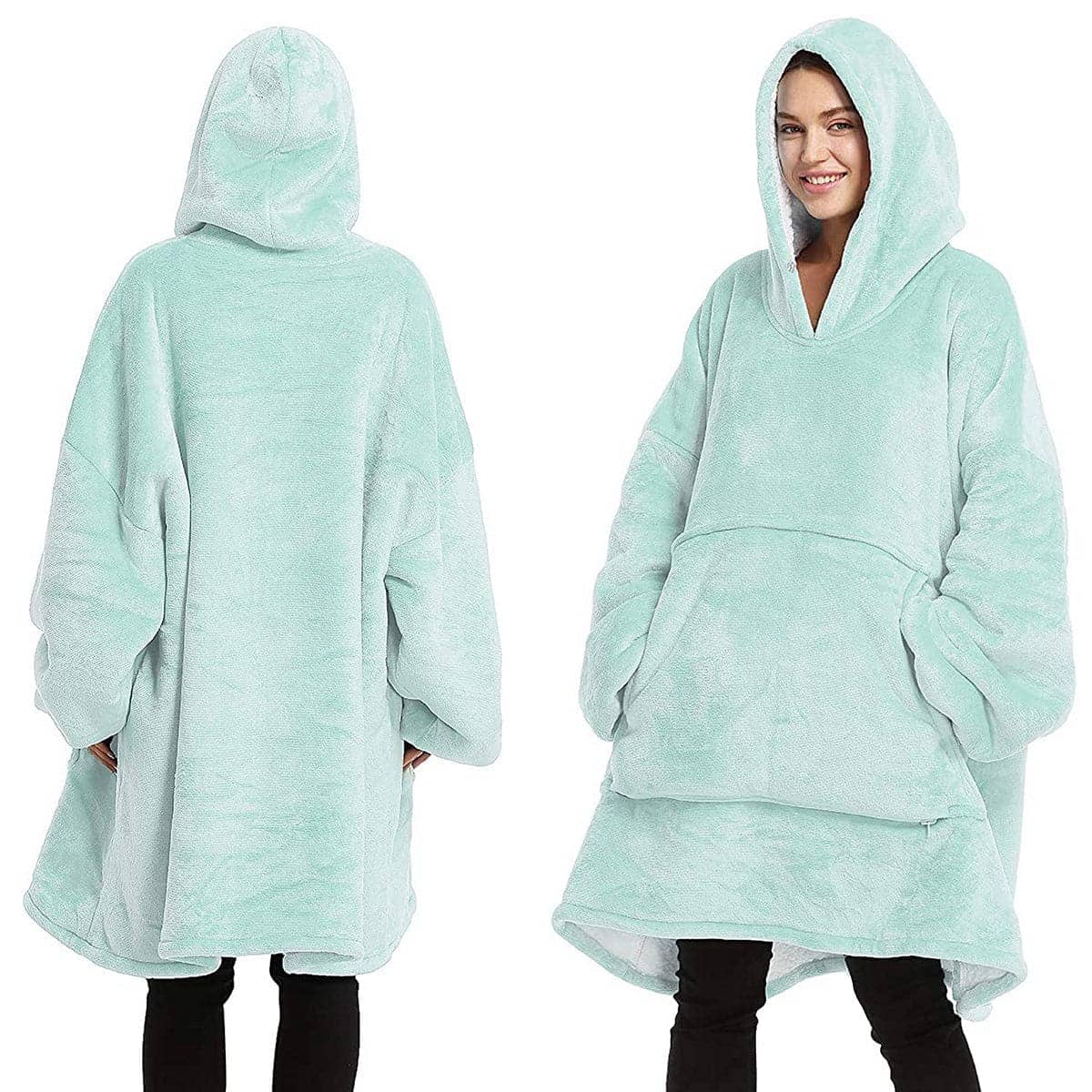 Oversized Soft Pullover Plain Hoodie Warm Fleece Blanket Plush Winter Sweatshirt, Aqua, Adult