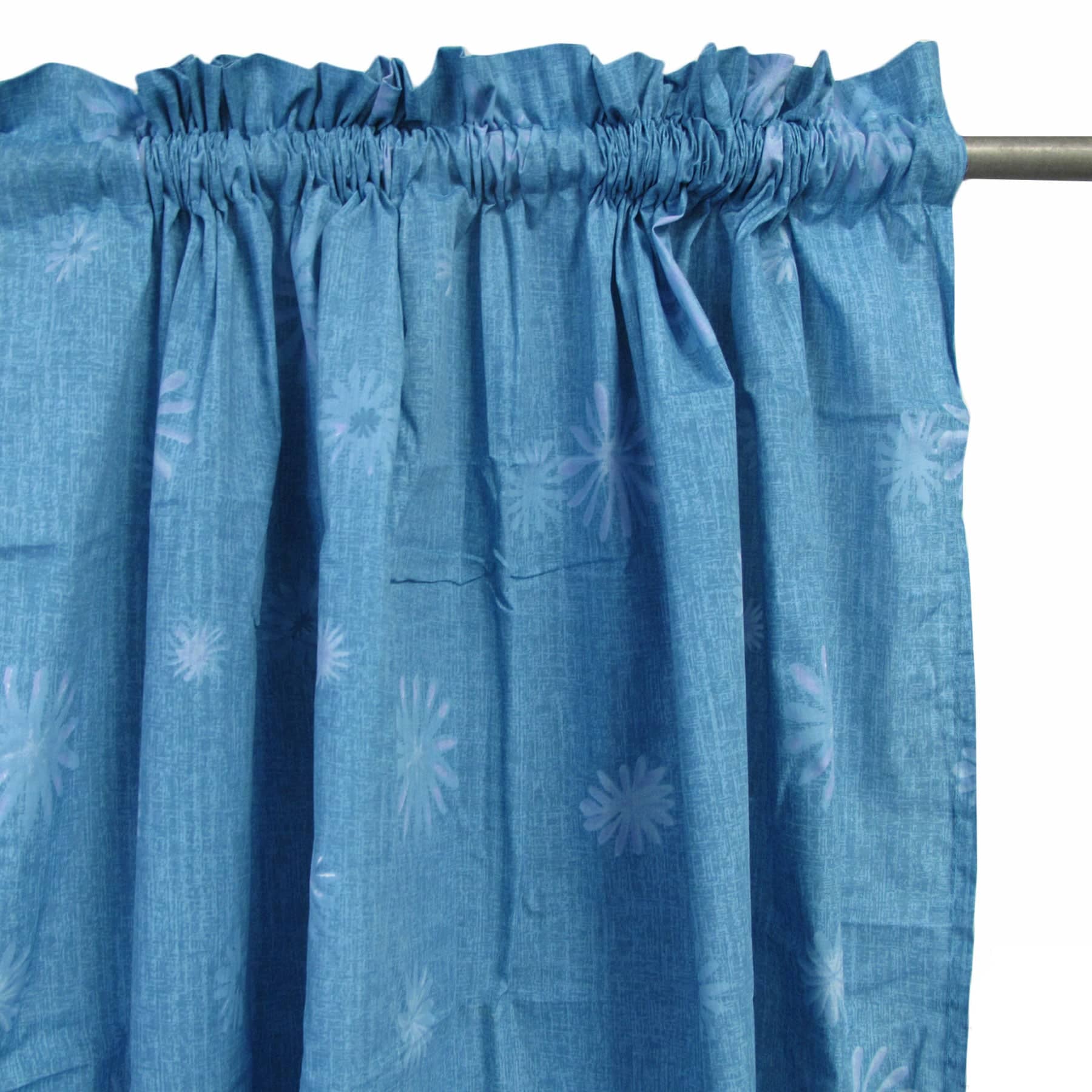 Pair of Polyester Cotton Rod Pocket Blue Daisy Curtains