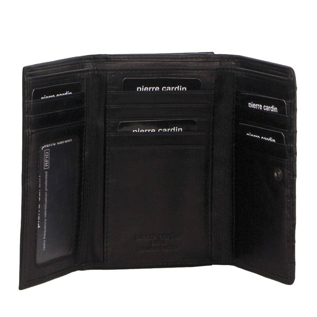 Pierre Cardin Stich Design Leather Ladies Large Tri-Fold Wallet in Black