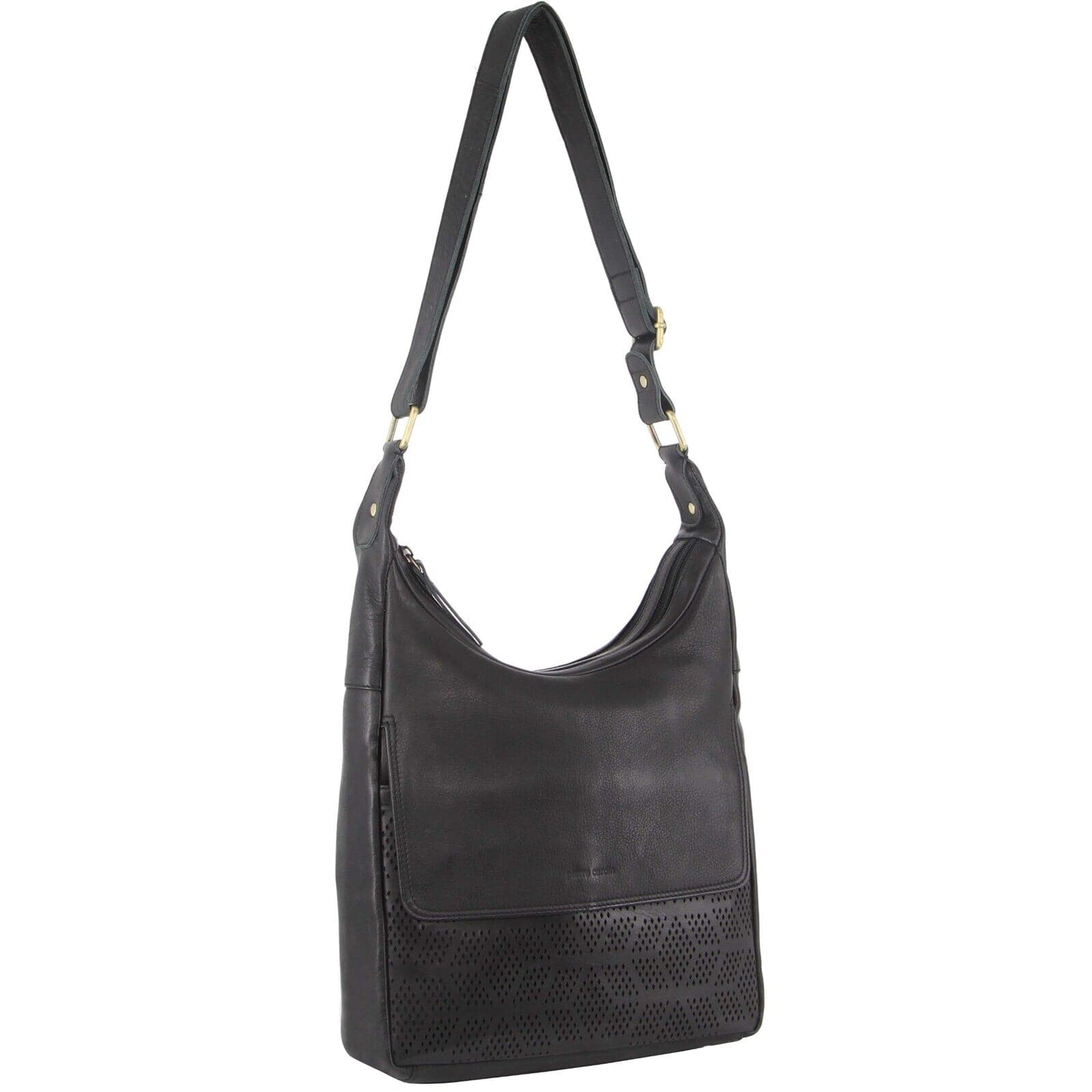Pierre Cardin Womens Large Leather Multi Zip Perforated Cross-Body Bag - Black