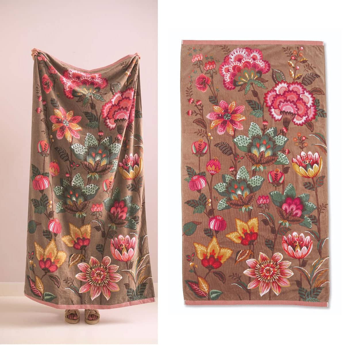 Wrap yourself in comfort and style with this chic Sunny Side Up Khaki Cotton Beach Towel 100cm x 180cm by PIP Studio. This beach towel will bring you a splash of colours on the beach and make you stand out. It features a stunning floral design printed in white, blue, red, pink, purple, sky, green, teal, forest, and brown colour tones. A great addition to your next beach getaway with the whole family. It is made from quality and absorbent 100% Cotton fabric that is soft against the skin.