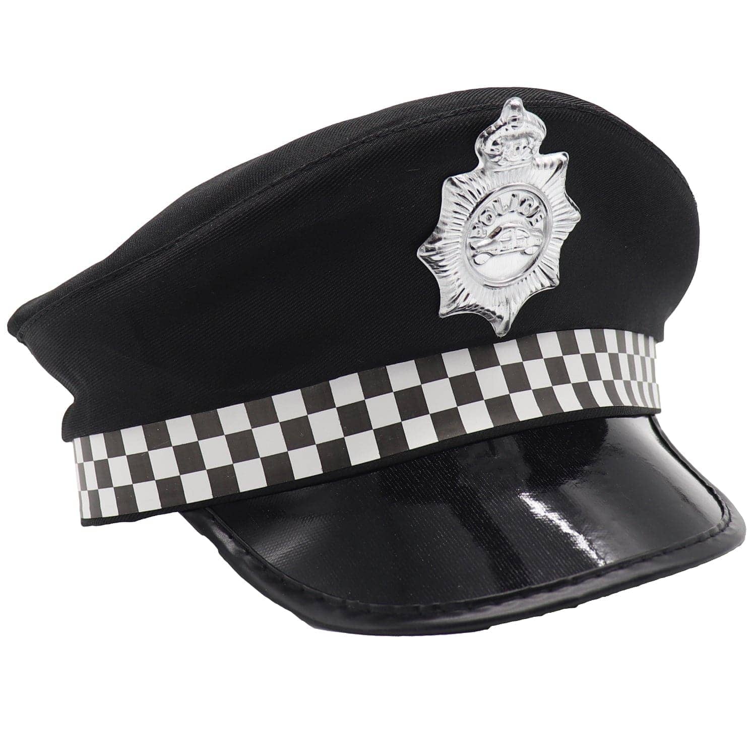 Command respect and complete your law enforcement uniform with our Police Officer Cap. Designed to mimic the headgear worn by real police officers, this cap features a classic black finish with a traditional checkered band that denotes authority. The front is adorned with a striking silver badge emblem.. Constructed with durable materials, it includes a glossy black peak that provides a sharp, professional appearance. The cap is ideal for costume events, theatrical performances, or as a part of a collection.