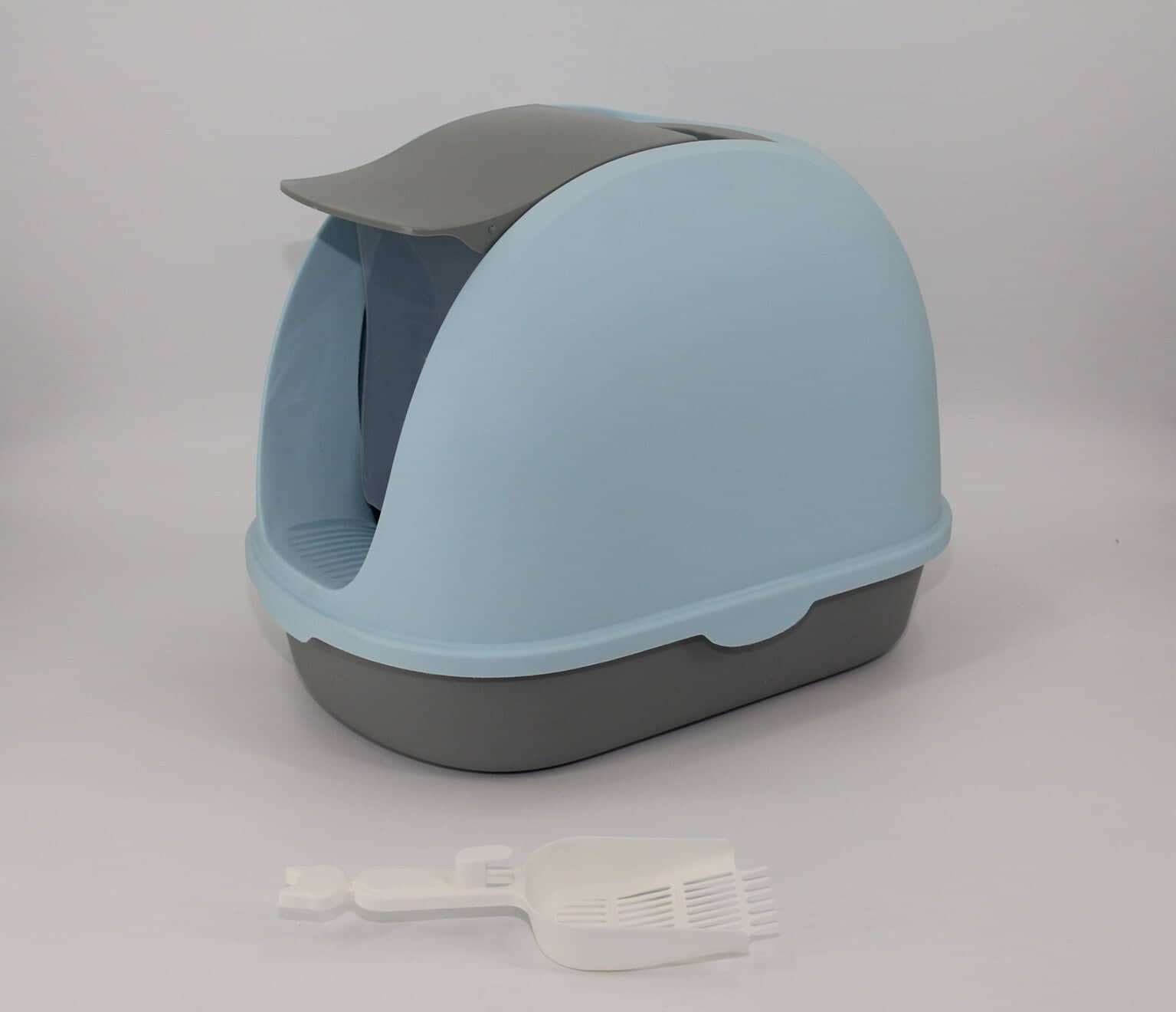Portable Hooded Cat Toilet Litter Box Tray House with Handle and Scoop Blue