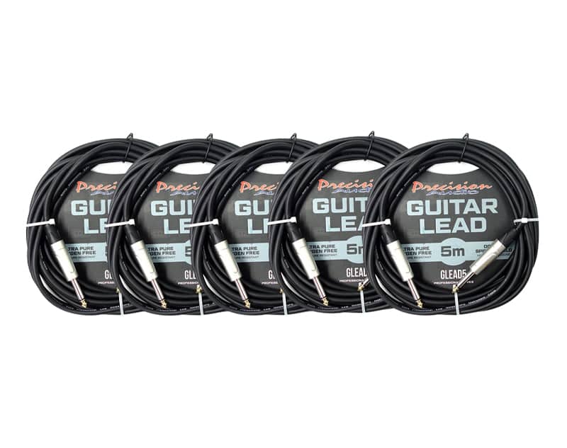 Precision Audio 5 Pack 1/4" To 1/4" 6.35mm Studio Stage Guitar Lead 5m GLEAD5
