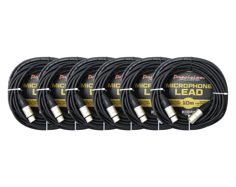 Precision Audio 5 Pack XLR To XLR Studio Stage Microphone Lead 10m Silver MLEADP10
