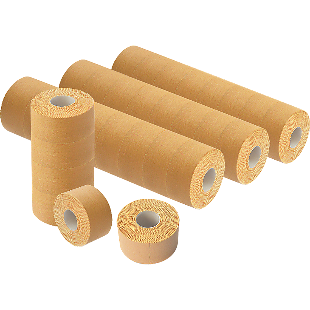 Three rolls are included in your order, each measuring 38mm wide by 13.7 metres long. The tape can be torn by hand or cut with scissors to the desired length. The tape's woven rayon fabric is tough and durable, a feature which is especially important for sports activities. The rubber-based blown zinc oxide adhesive is extremely strong and will tolerate plenty of strenuous movements. And with the tape's ability to unwind smoothly and evenly from the roll, the tape is easy to apply and it moulds to the body well.