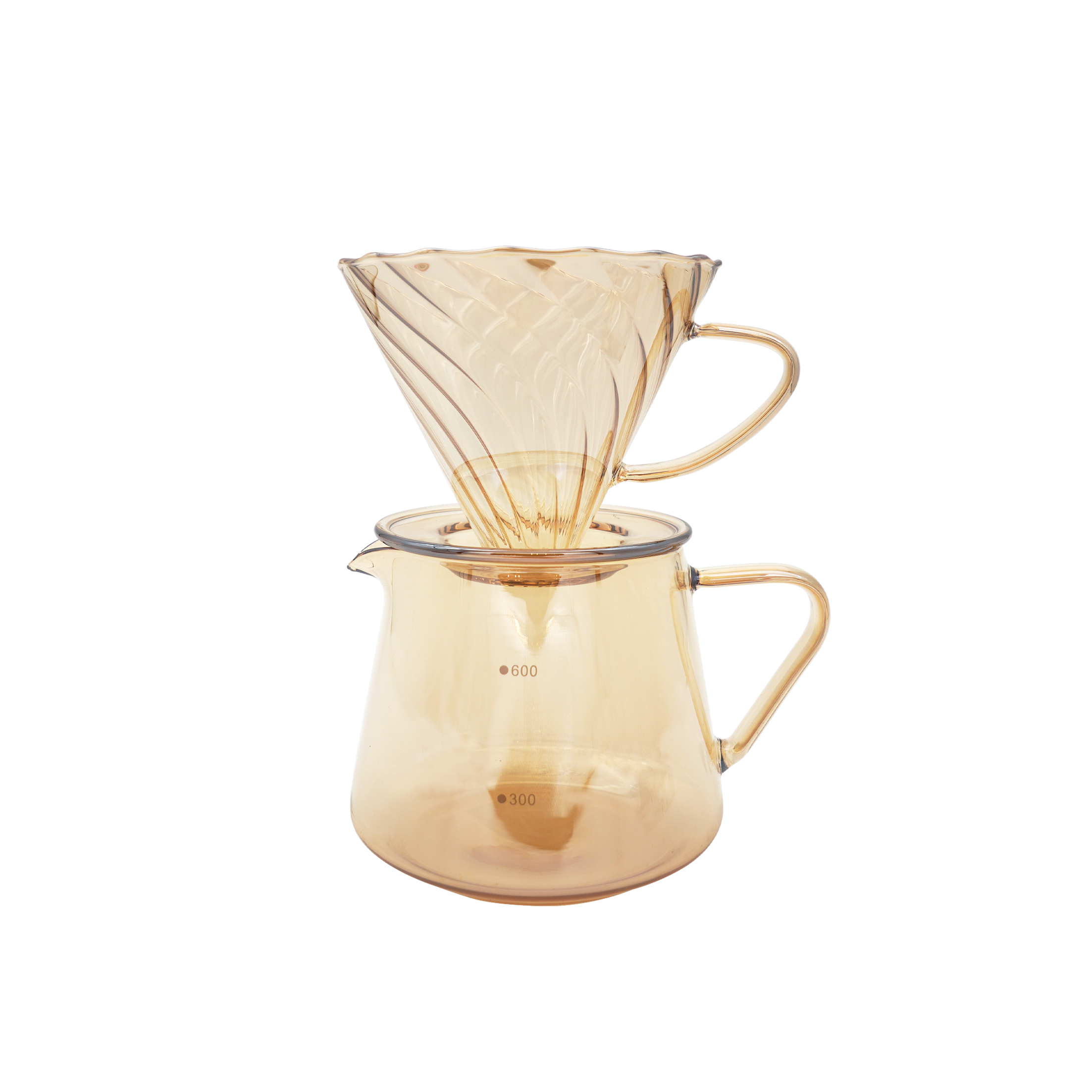 Serving espresso has never been more stylish thanks to the contemporary flair imbuing this set of transparent glass in a vibrant shade of gold, which includes a coffee Server and a clear glass cup(600ml). Elegant grooves adorn the exterior, a gold colour finish visually enhancing the set's graceful lines.
