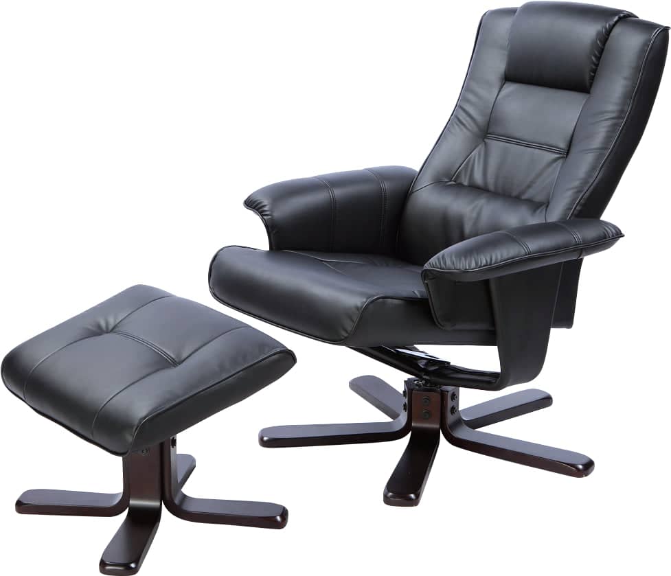 The massage recliner is made with comfortable PU Leather that's easy to clean. Classic black will go with any decór. The wooden base of both the recliner and the footrest are equally attractive and modern in a curved cappuccino-coloured wood.