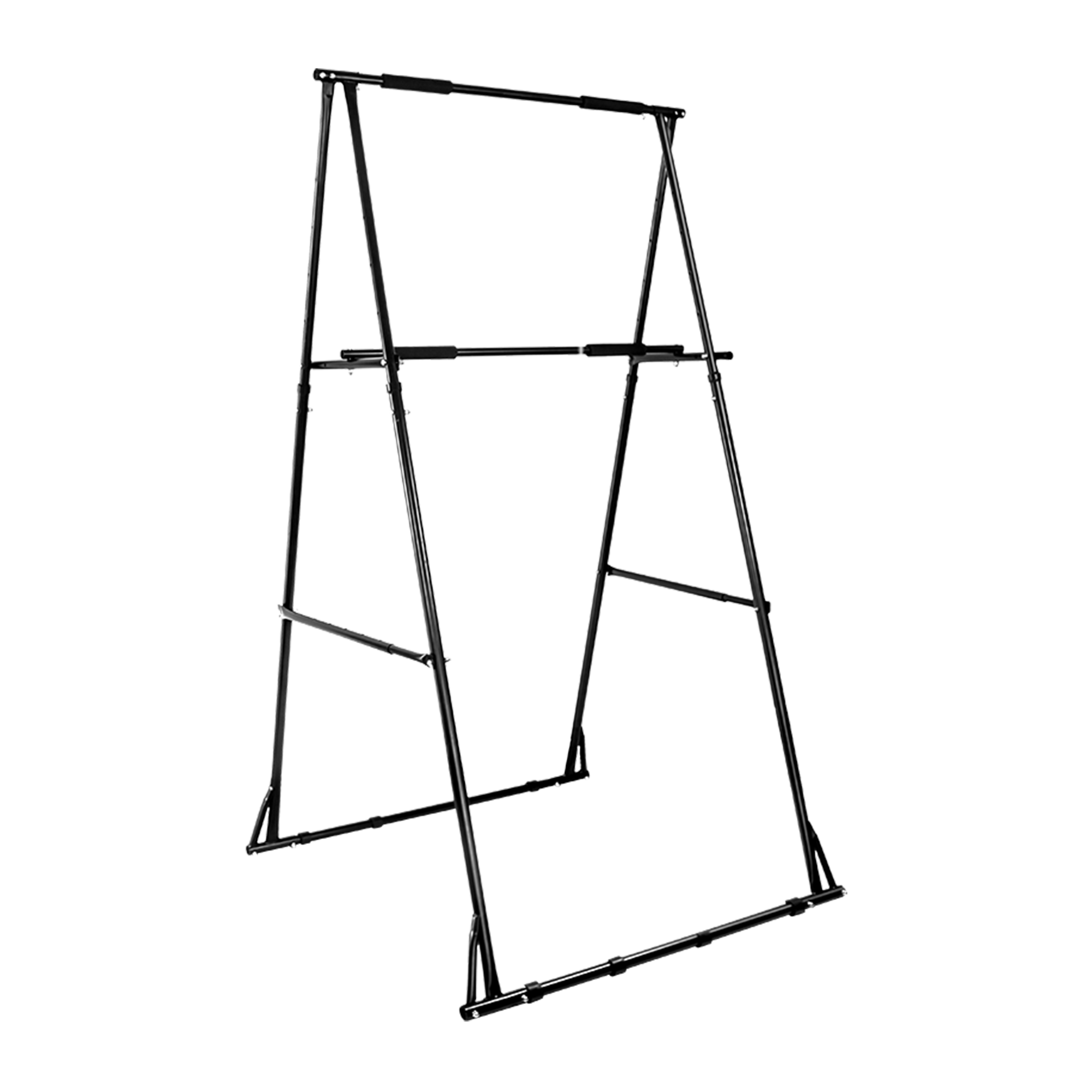 Its free-standing design allows you to move it easily around your house – or even take it outside when weather permits. Unlike using a wall- or door-mounted pull-up apparatus, you can fold it up and stash it out of sight when guests arrive. It accommodates full body swings – no knee bending needed to keep your feet off the ground. Soft, cushioned foam handle grips are easy on your hands, even during the most rigorous workout. Sturdy support bars reduce wobble by an incredible 92 per cent.