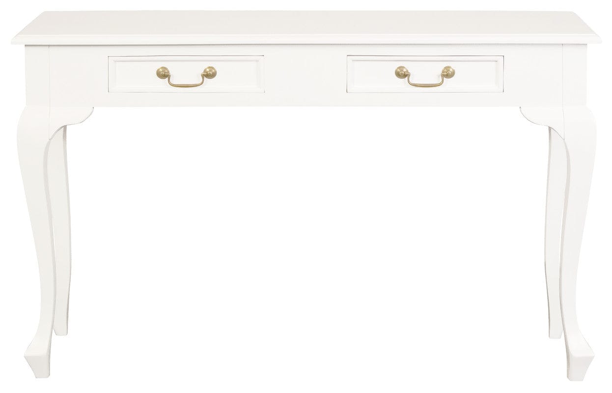 Step into an era of elegance and sophistication with the Queen Anne 2 Drawer Carved Sofa Table. Expertly crafted from solid mahogany timber, this magnificent piece showcases the timeless beauty of Queen Anne furniture design, renowned for its graceful curves and intricate detailing. The table's classic silhouette features delicately curved legs and intricately carved details that pay homage to the refined craftsmanship of the 18th century. The rich, dark mahogany finish adds a touch of luxury and warmth, making it a stunning centerpiece in any room. The two spacious drawers, adorned with elegant brass handles, offer both style and functionality, providing ample storage for your essentials. Perfect as a console table in your entryway, a sophisticated addition to your living room, or a refined desk in your study, the Queen Anne table seamlessly blends beauty and practicality. Its minimal assembly requirements ensure you can enjoy its charm and functionality in no time.