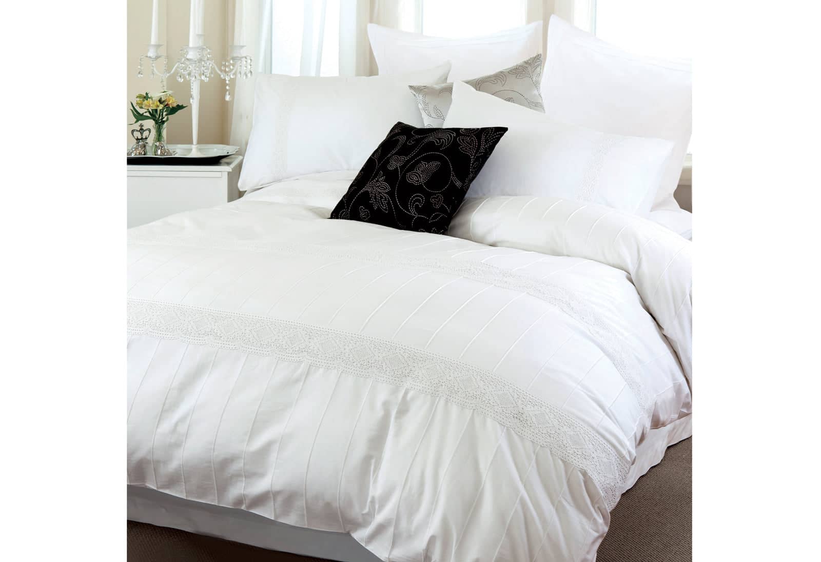 Queen Size 3pcs White Hollow Out Lace Quilt Cover Set