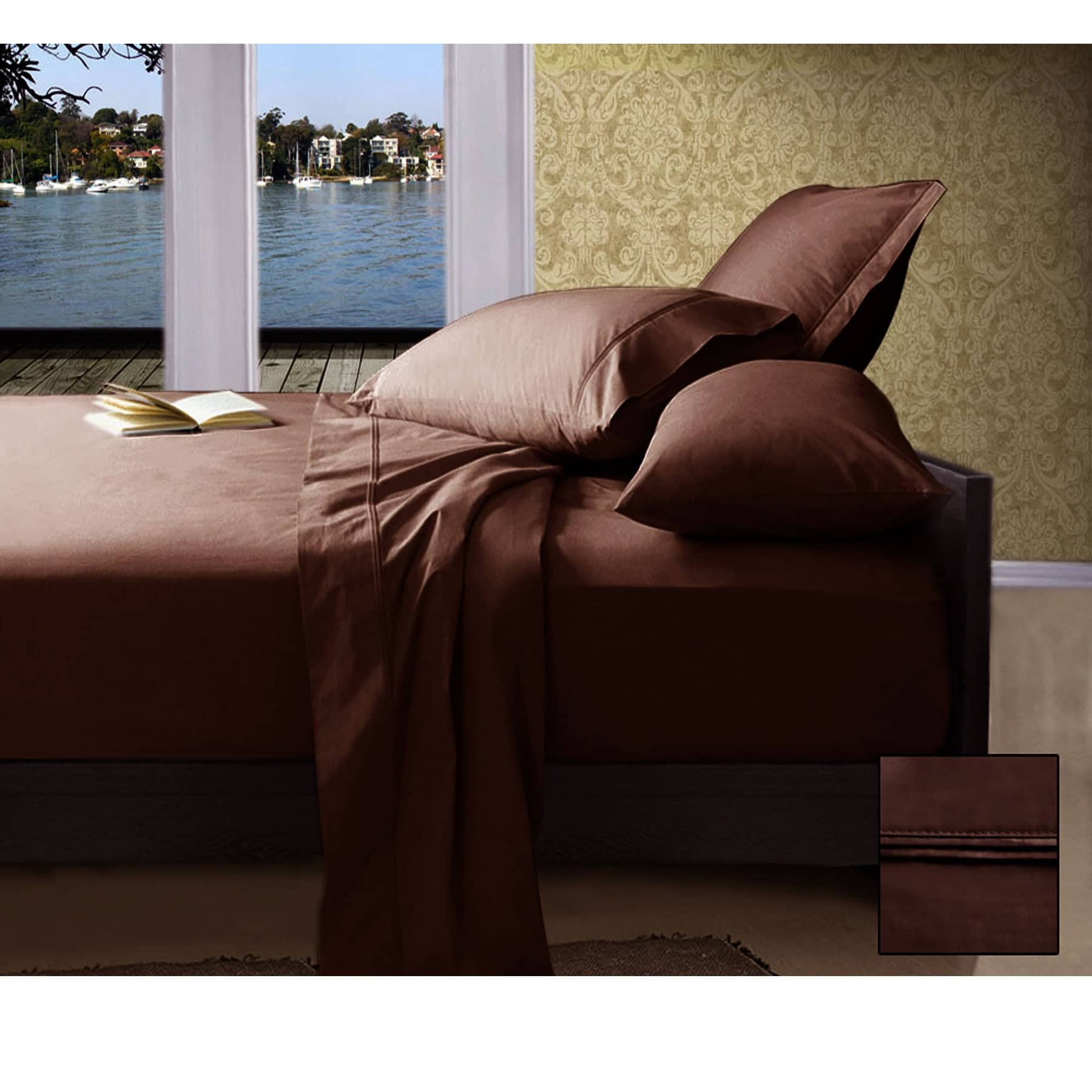 Ramesses 1000TC American Pima Cotton Plain Design Sheet Set Chocolate Queen