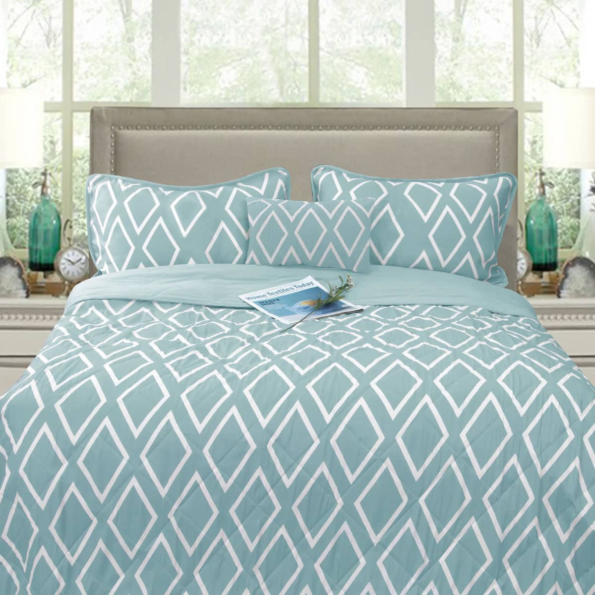 Bring a new touch to your bedroom decor with this Alena Aqua 4 Pcs Reversible Ultrasonic Micro Flannel Comforter Set by Ramesses. Made from soft, durable, and shrinkage-free microfiber yarns in aqua and white hues. Serve yourself with better sleep every single night and wake up each morning with this Premium Hotel Collection Comforter Set. Premium design with high quality craftsmanship ensures the added comfort and super soft feel giving you the best sleep experience.