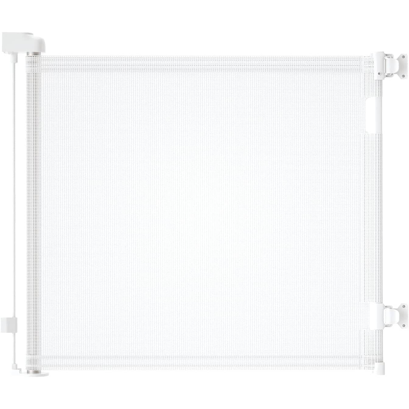 This retractable baby gates can be extended up to 150cm wide and 86cm tall. Mesh can be completely retracted away when not in use.