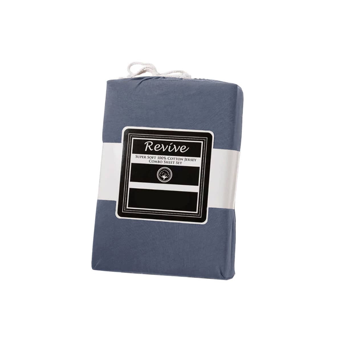 Revive Steel Blue 100% Cotton Jersey Super Soft Fitted Sheet Combo Set Double 38cm Wall