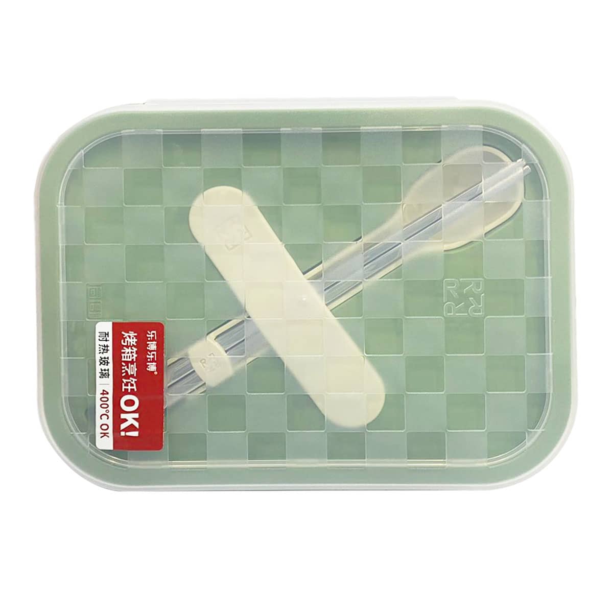 ROBO 3 Compartment Glass Food Container Green 1L