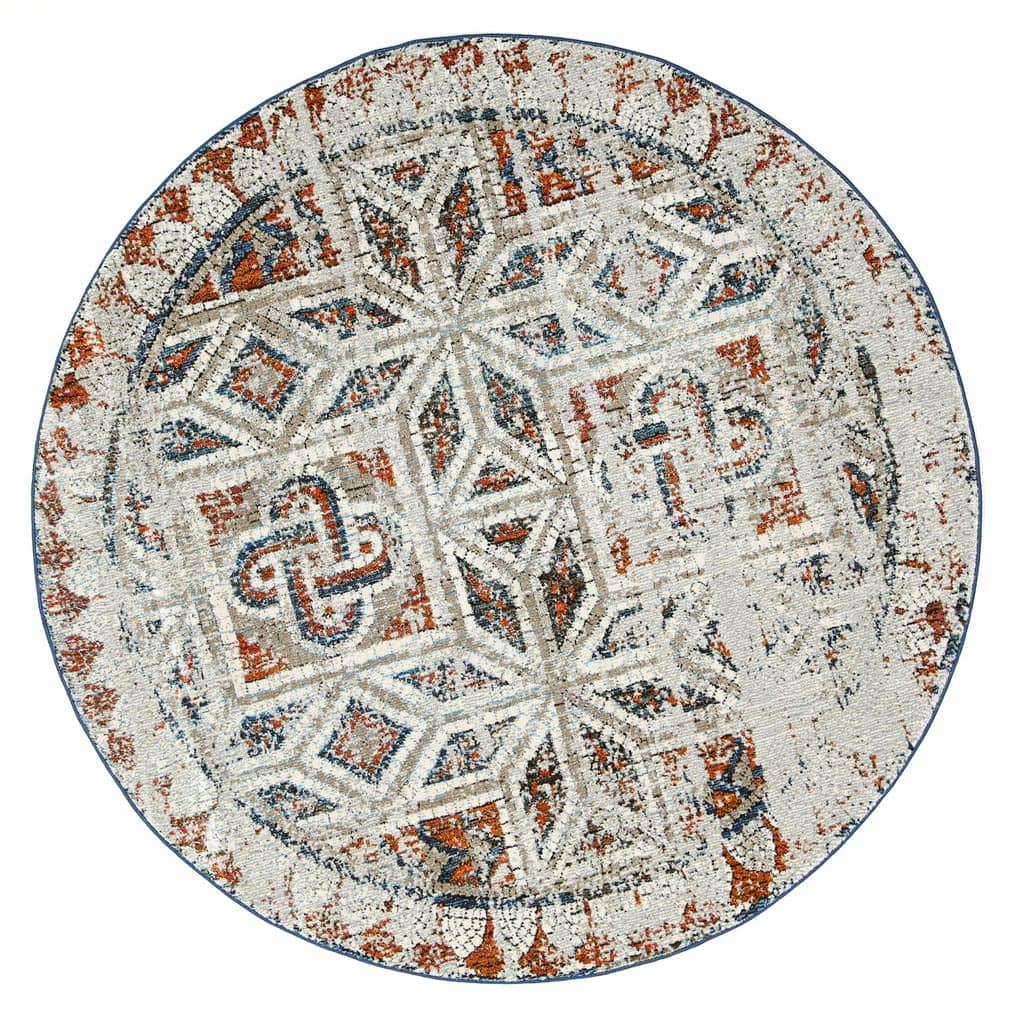 Roman Mosaic Geometric Navy Red Round Rug 200x200 cm Round