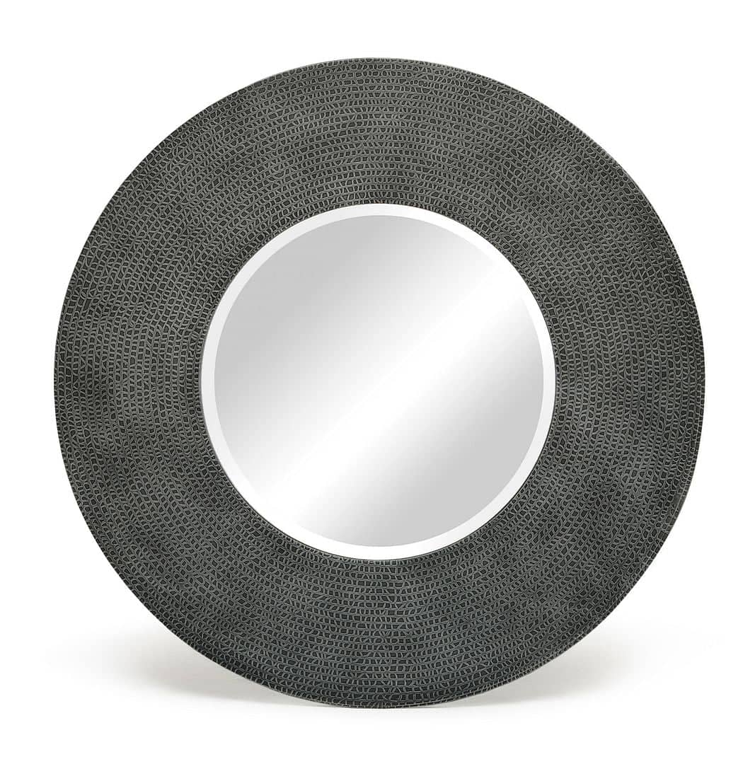 Round Wall Mirror with Croc Pattern Frame in Black Silver Finish
